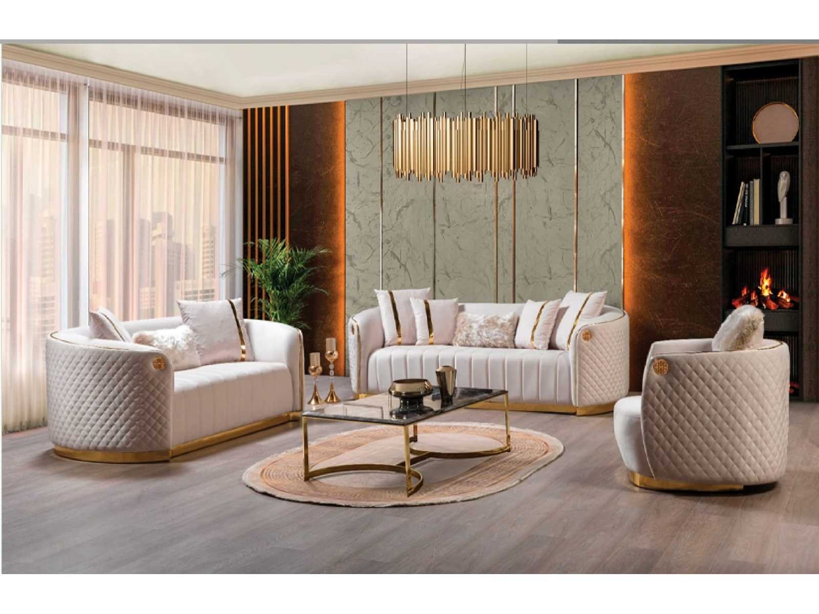 Salon tokyo 3 zit 250cm, 2 zit 200cm 1 zit 100cm kleur: beige stof; staat: in verpakking
