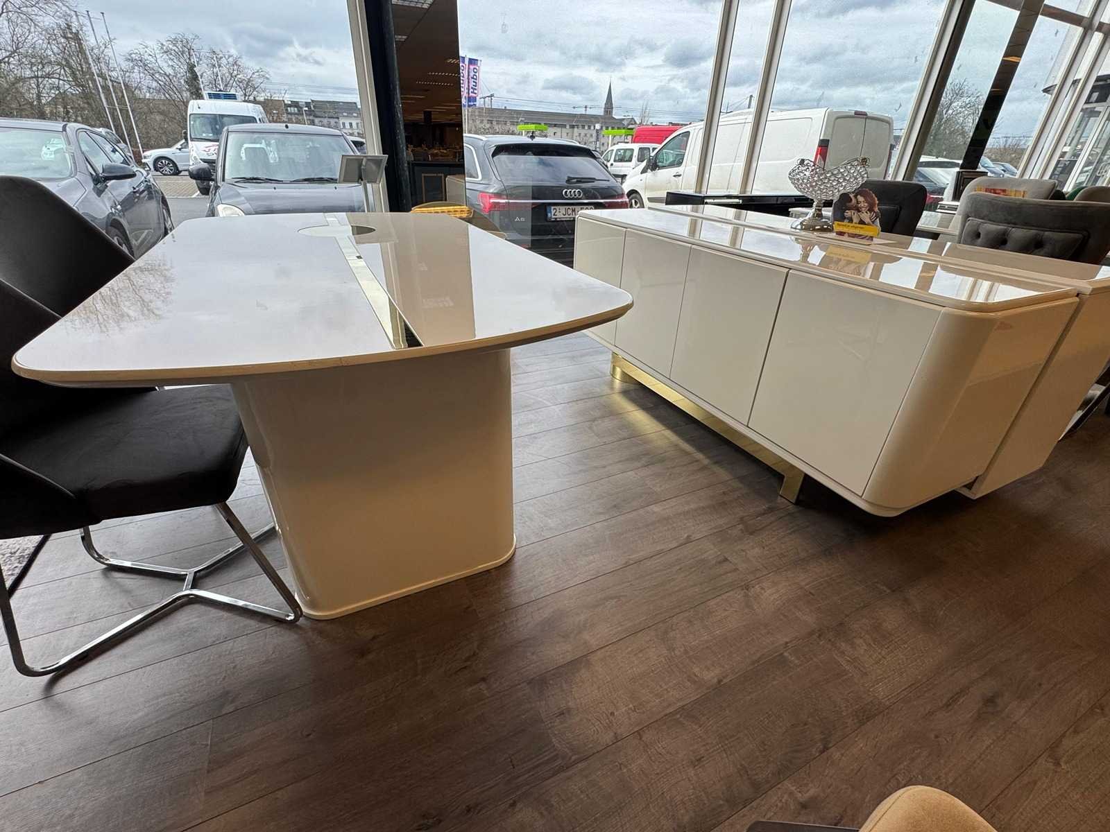 Eettafel 180cm + dressoir 180cm. Staat: showroom model