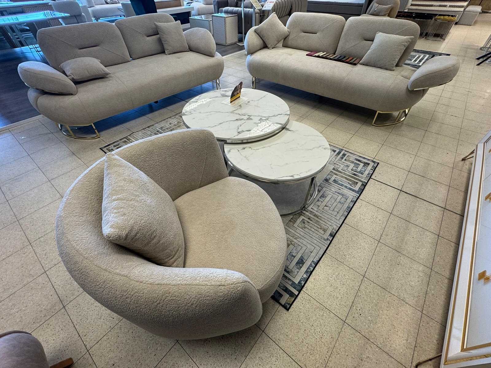 Salon Rain 3 zit 250cm, 3 zit 250cm 1 zit 90cm kleur: beige stof; staat: showroom model