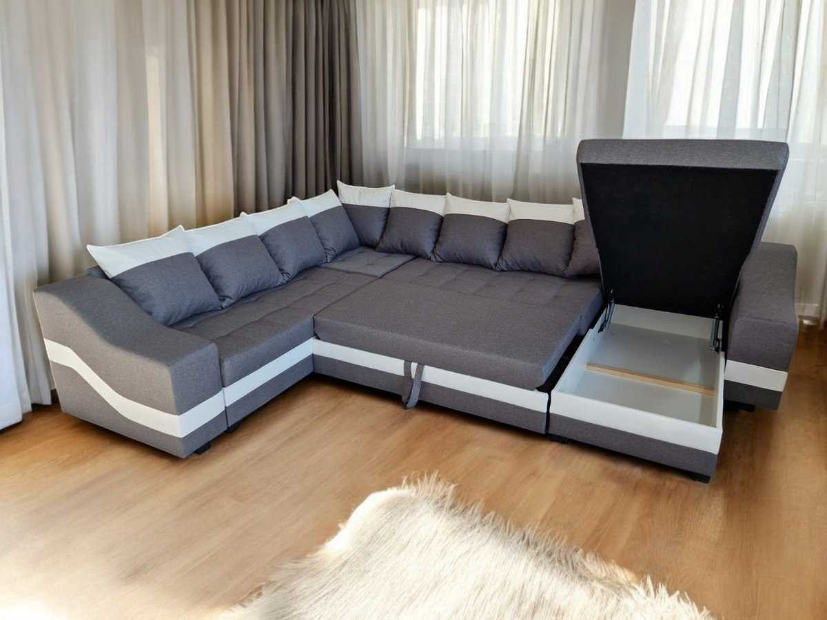 Met slaapfuncite en opbergruimte afmeting:250x300x160cm kleur: grijs stof, wit lederlook; staat: in verpakking