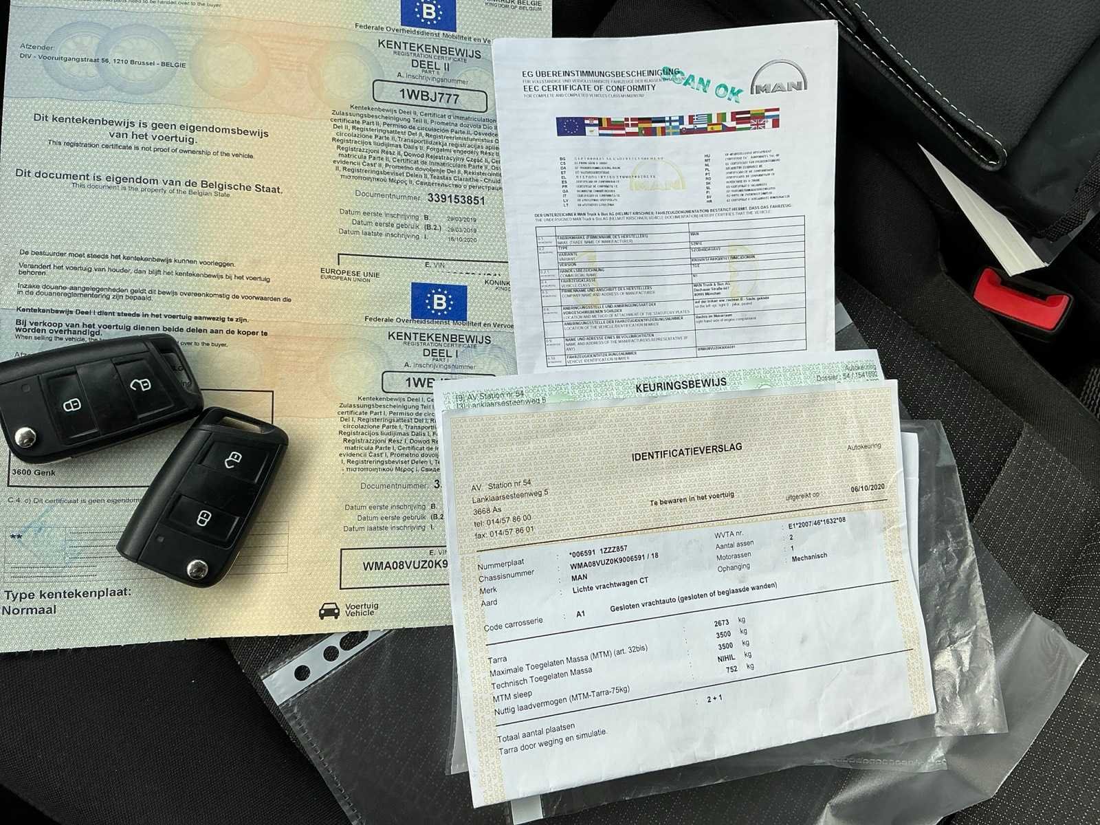 <Br> - Inschrijvingsbewijs: deel1 en deel2 aanwezig. - Gelijkvormigheidsattest: aanwezig. - Voorzien van Palfinger laadklep. - Afmeting laadbak: circa 430x207xH208cm. - Gebruikssporen. Merk: Man Type: TGE3.140 Chassisnummer: WMA08VUZ0K9006591 Afgelezen kilometerstand: 137100km Cilinderinhoud: 1968cc Vermogen (kW): 103kW Brandstof: diesel Datum eerste inschrijving: 29/03/2019 Transmissie: Automaat Aantal sleutels: 2 Emissieklasse: Euro 6b