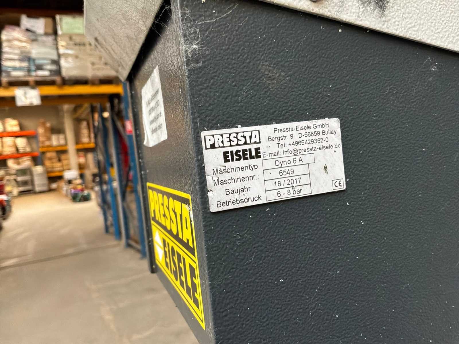 Hoogte is inclusief kleine palet waarop machine is gemonteerd Merk: Pressta Eisele Type: Dyno 6 A Bouwjaar: 2017 Afmeting l: 520mm Afmeting b: 450mm Afmeting h: 1535mm