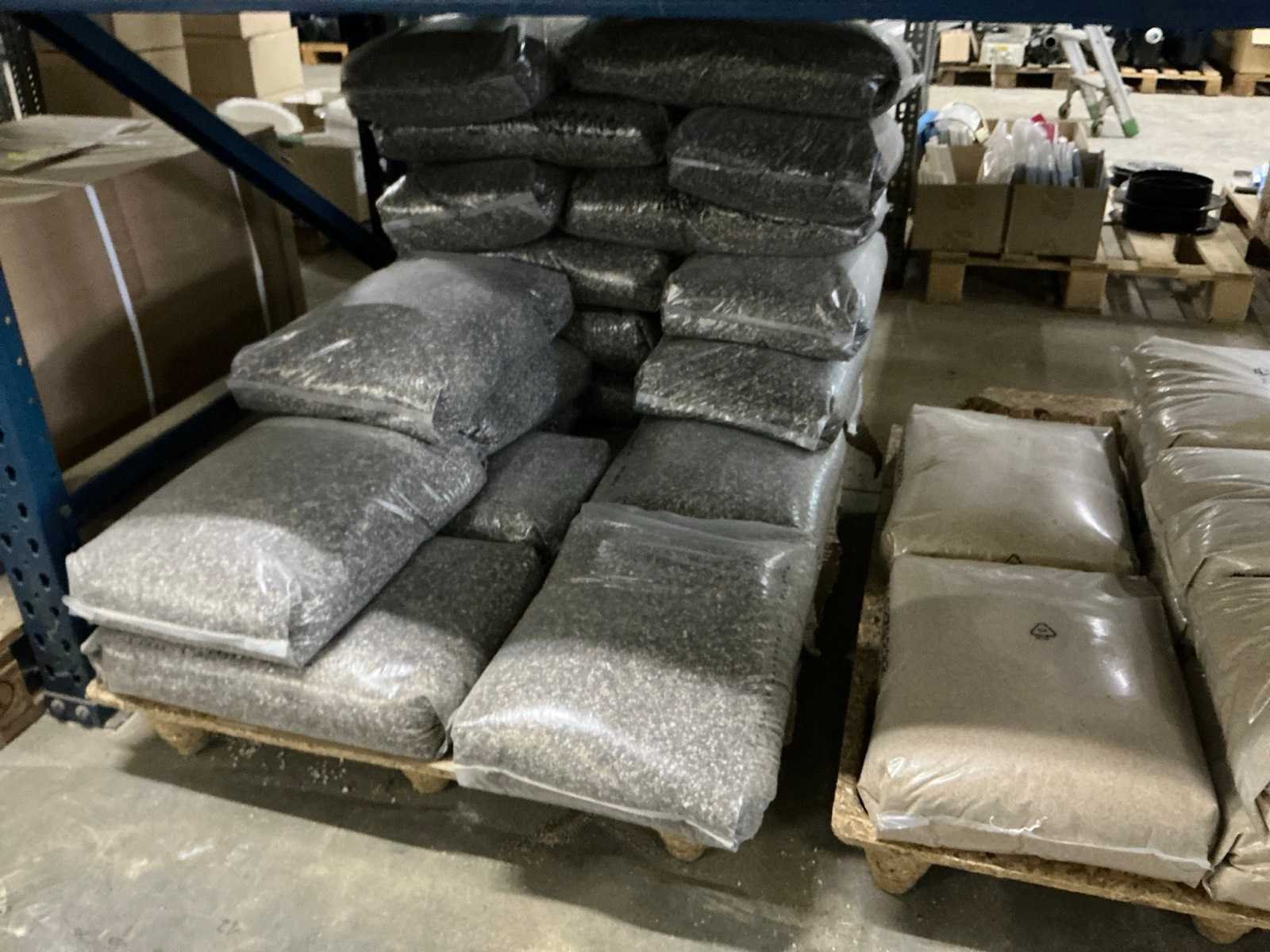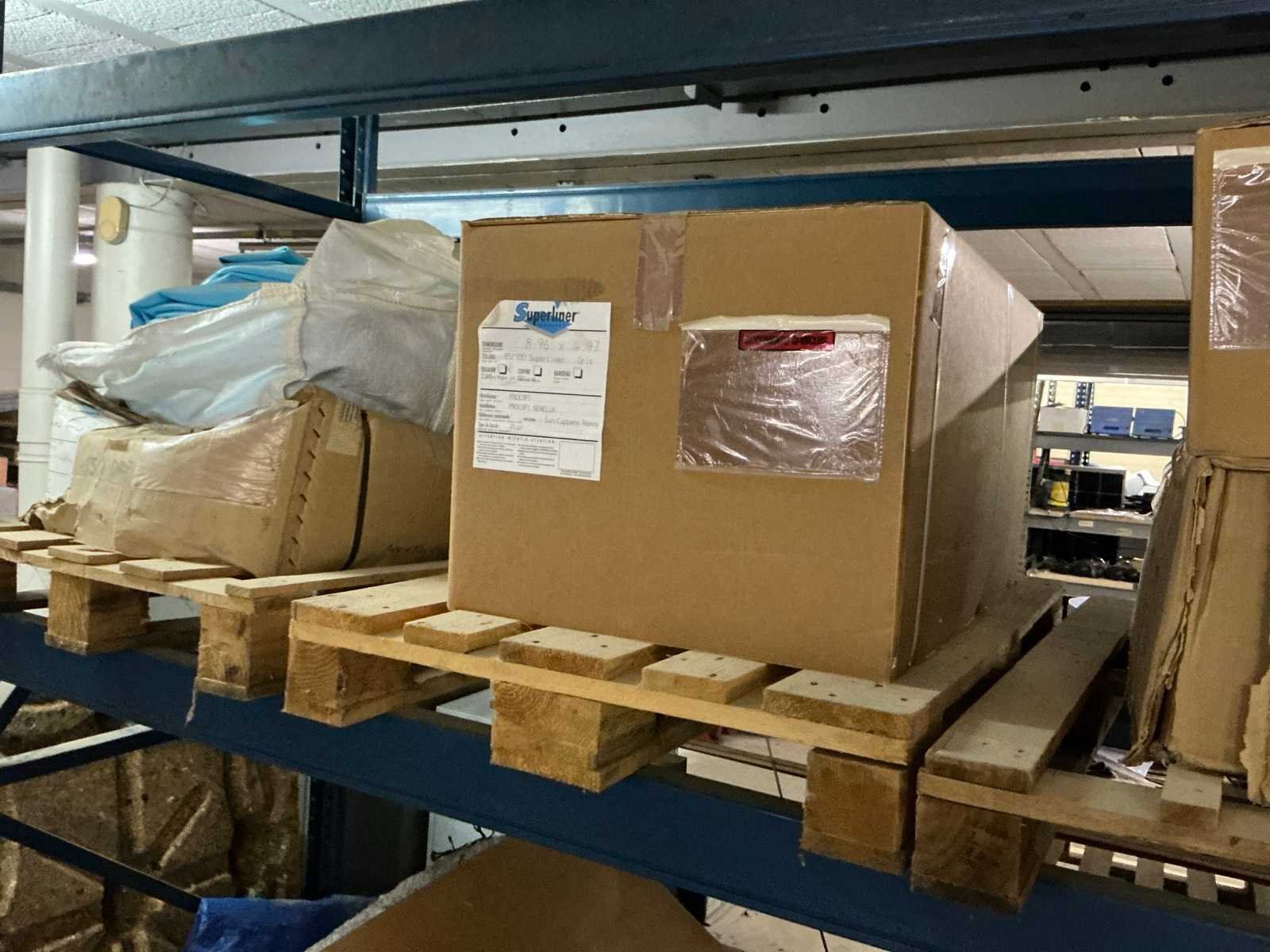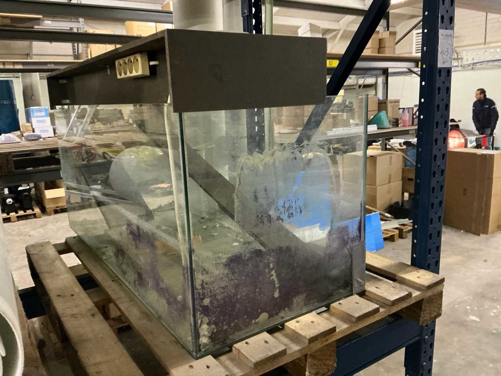 Waaronder liners, covers, filterkiezel, filterzand, filterglas, wachtbuis, …. alsook aquarium, filterdoek…. zijnde volledige inhoud stelling, inclusief stelling met 4 staanders 100xH250cm en 12 liggers 270cm