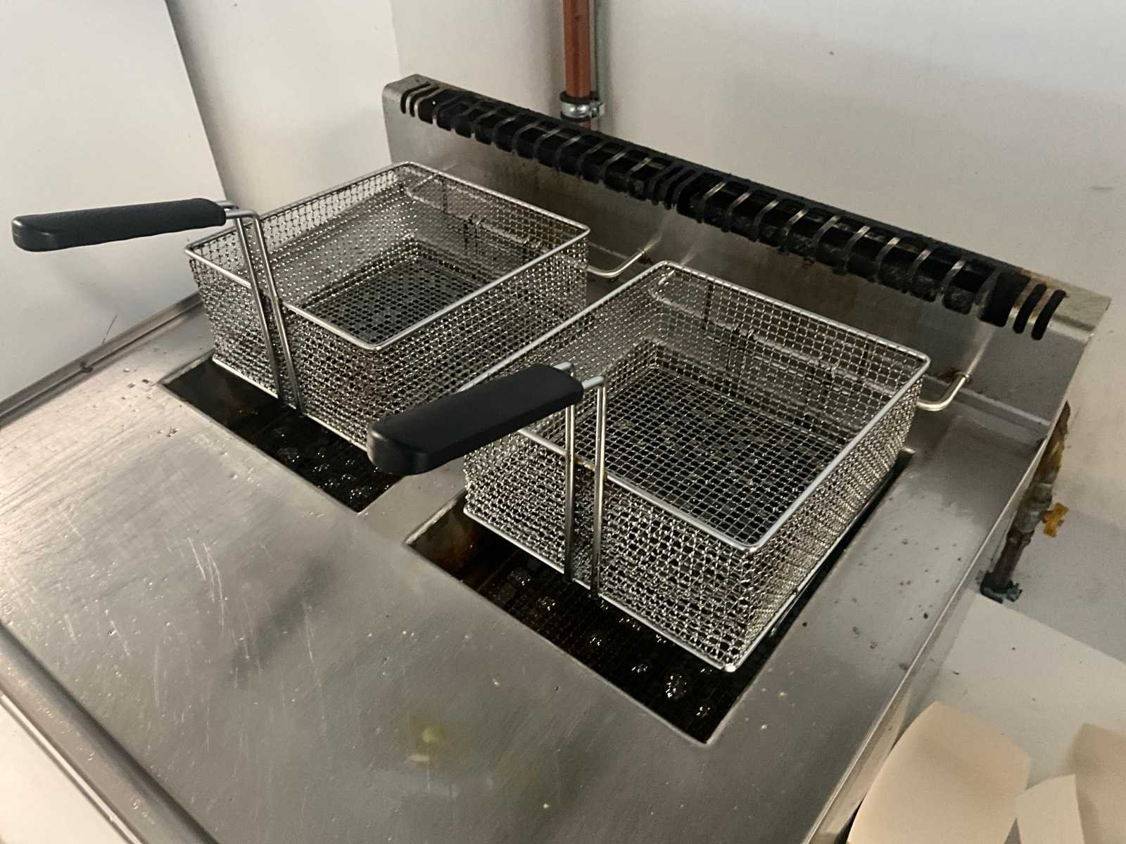 Compleet met resterende inhoud frituurolie. Merk: Diamond Lengte: 65cm Breedte: 70cm Hoogte: 40cm Aantal zones: 2 Gas: true