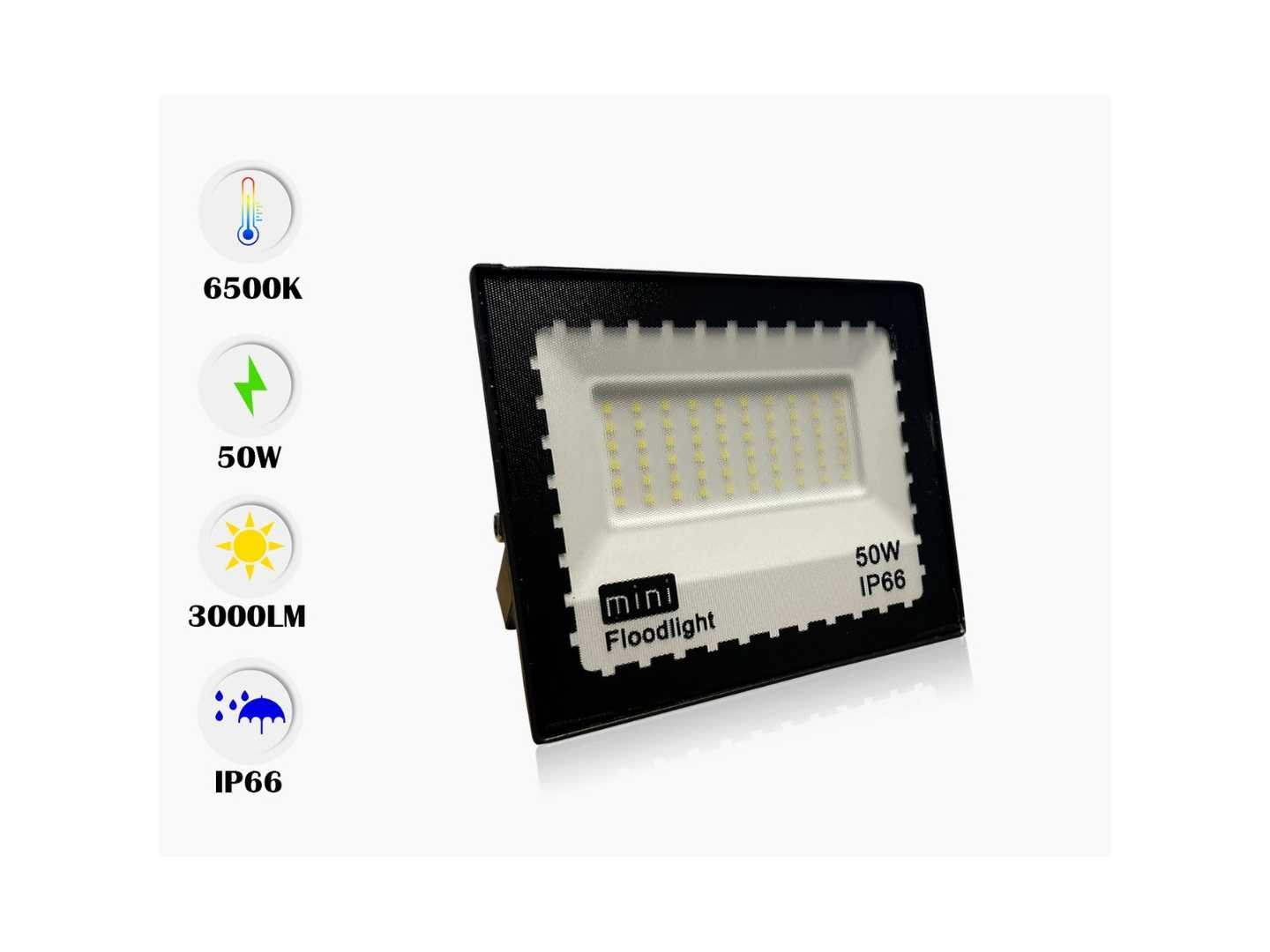 6 x LED-projector – Vermogen: 50W – LED-type: SMD – Kleurtemperatuur: 6500K (Koud Wit) – Lichtstroom: 4000 lm – Afmetingen: 180 x 145 x 30 mm – Spanning: 110-240V (50/60Hz) – TransformatieTeur inbegrepen – Levensduur: 30.000 uur – Beamingshoek: 120° – Beschermingsgraad: IP65 (waterdicht, stof- en spatwaterbestendig) – Geschikt voor gebruik binnen en buiten – Ideaal voor verlichting van grote oppervlakken. Merk: Venus