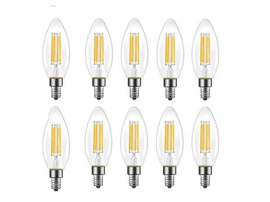 50 x C35 LED-gloeidraadlamp – 6W – E14 – Dimbaar – 2700K – Decoratieve vlamstijl – E14 fitting staNdard – Variabele intensiteit voor flexibele verlichting – Kleurtemperatuur 2700K (warm wit) – Lichtvermogen 500 lumen – Vervangt een gloeilamp van 50W – LED-type: Filament – Afmetingen: 35 x 112 mm – Spanning: 85-240 V – Hoek320° bundel – Levensduur 30.000 uur – IP20 klasse, gebruik binnenshuis – Energiezuinig met strak design