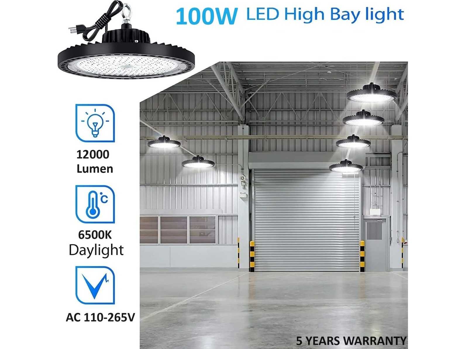 25 x Highbay UFO 100 Watt LED in PRO-ontwerp biedt hoge efficiëntie met 12.000 lumen bij 100 lumen per watt - Uitgerust met Professioneel LED voor superieure helderheid en betrouwbaarheid - Dimbaar met een schakelaar die 3 verschillende standen biedt: 60%/80%/100% vermogen - Aangedreven door een hoogwaardige Lifud-driver, die stabiele prestaties garandeert - Koud wit licht bij 6500K voor heldere, duidelijke verlichting - Waterdicht met een IP65-classificatie, ideaal voor zowel binnen- als buitengebruik - Afmetingen: Ø 260mm x 102mm voor eenvoudige installatie - Duurzame constructie van gegoten aluminium met een PC-lens, met een levensduur van 30.000 uur - 90° stralingshoek voor brede lichtdekking - Energiezuinig met een power factor >0,95 - Hoge CRI >80 voor nauwkeurige kleurweergave - Compatibel met 110-265V - Geleverd met 5 jaar garantie voor gemoedsrust - Weinig onderhoud door de lange levensduur - Efficiënte warmteafvoer voorkomt oververhitting - Milieuvriendelijk en kosteneffectief, verlaagt de energierekening - Biedt flikkervrij, stabiel licht. Merk: Venus