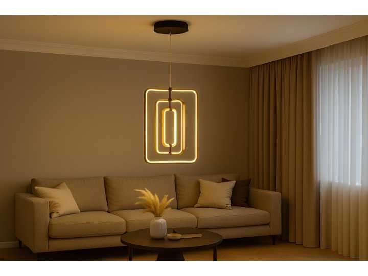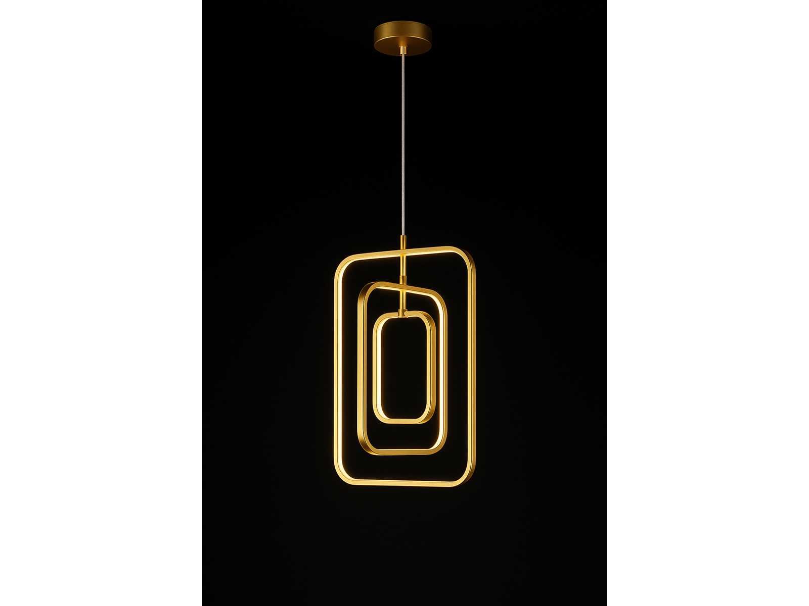 LED hanglamp model 5835/3 – Totaal vermogen 45W – Elegante gouden afwerking – Modern rechthoekig designE met drie lichtelementen (500×330 mm, 400×270 mm en 300×210 mm) – In hoogte verstelbaar – Lichtbron: geïntegreerde LED-strip – Spanning: 220-240V (50/60 Hz) – Inclusief montageset – Ideaal voor verfijnde binnenverlichting: woonkamers, eetkamers of kantoren.