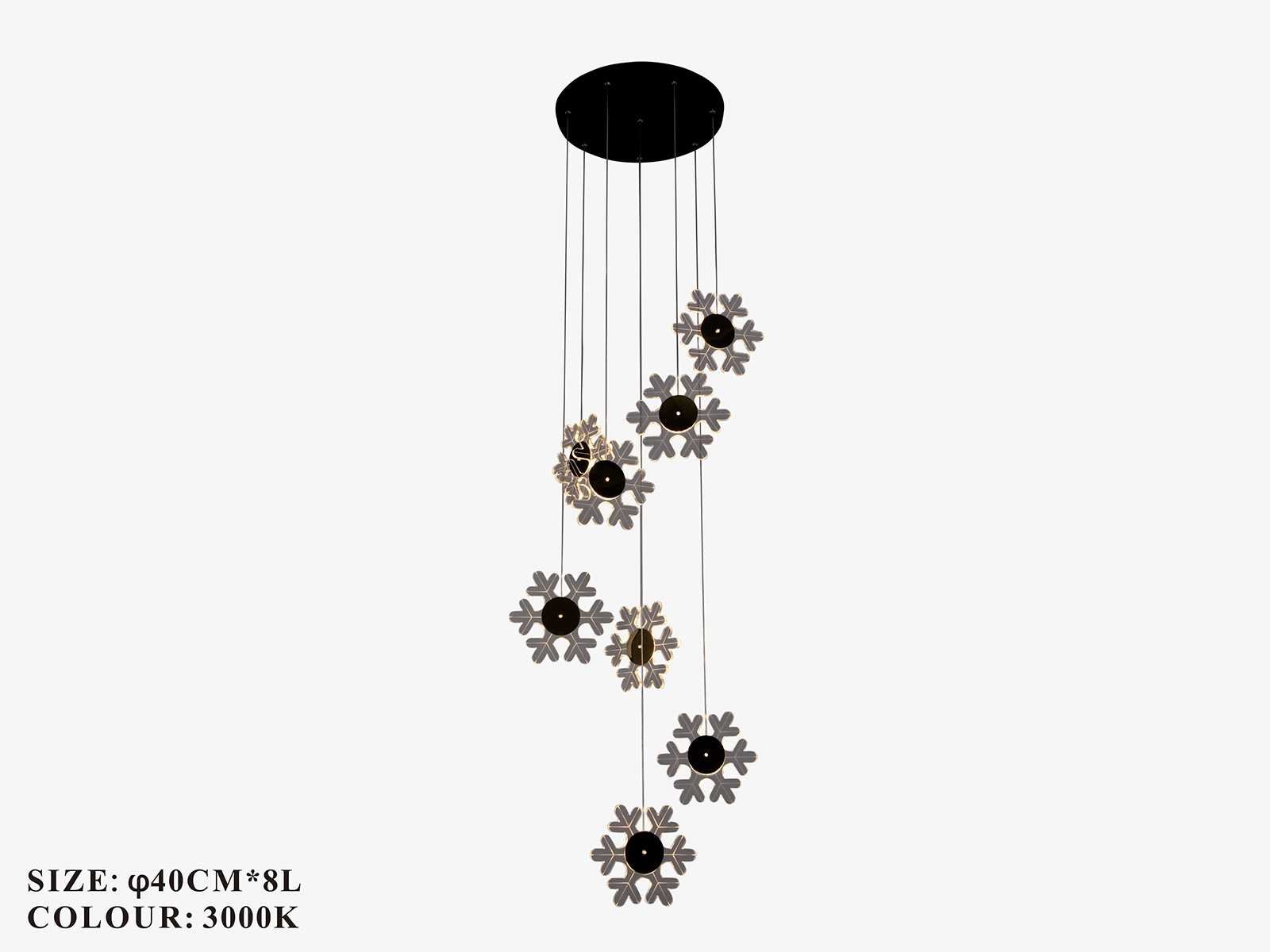 LED hanglamp model B074/8 – Kleurtemperatuur 3000K (warm wit) – Diameter: 400 mm – In hoogte verstelbaar – LichtbronEuse: geïntegreerde LED-strip – Spanning: 220-240V (50/60 Hz) – Inclusief montageset – Geschikt voor stijlvolle binnenverlichting: woonkamers, eetkamers, slaapkamers of kantoren – 3 jaar garantie.
