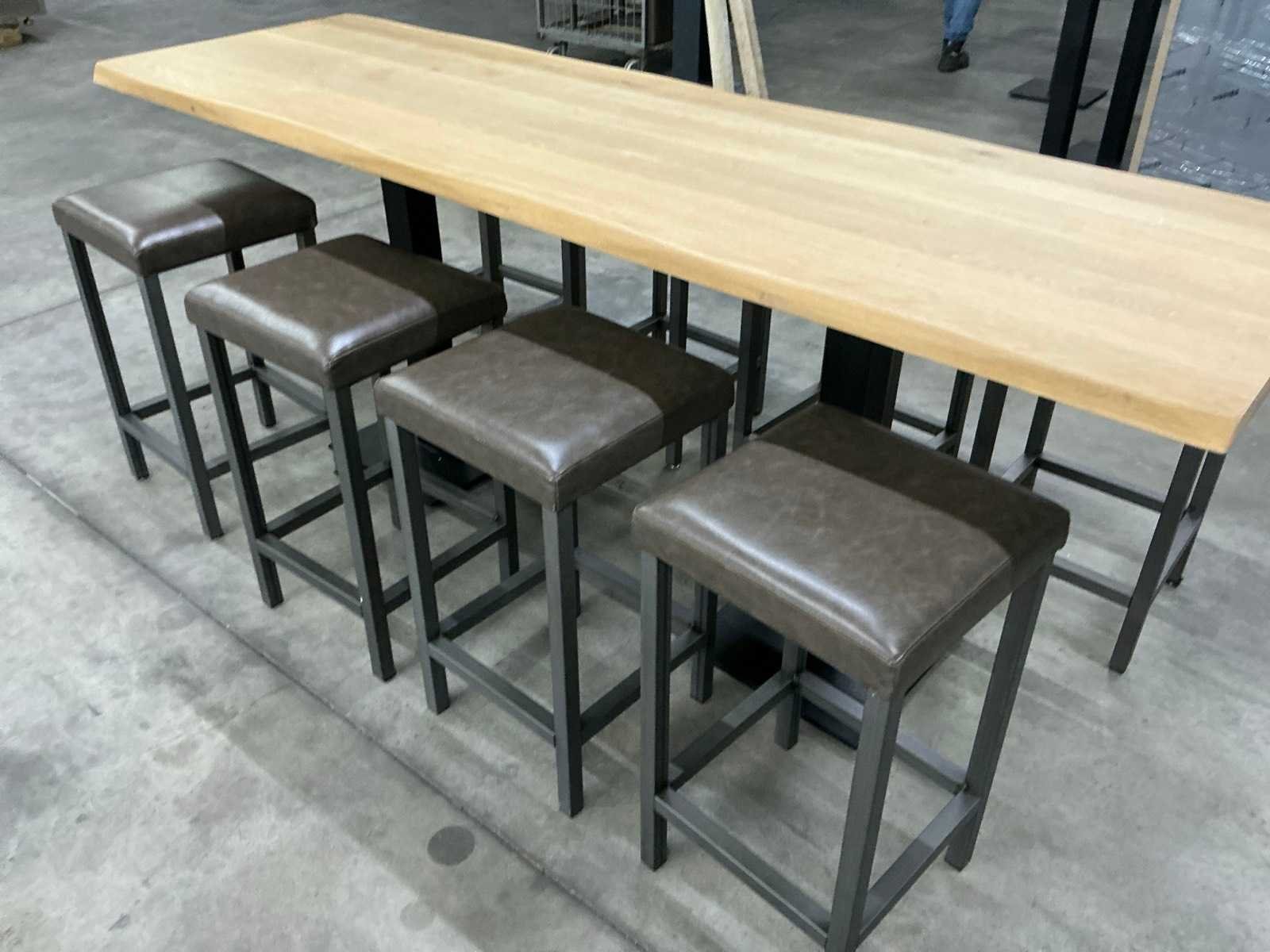 Formaat tafel lxbxh 230x72x91 cm Formaat krukken lxbxh 40x40x70 cm Leder bekleed: true