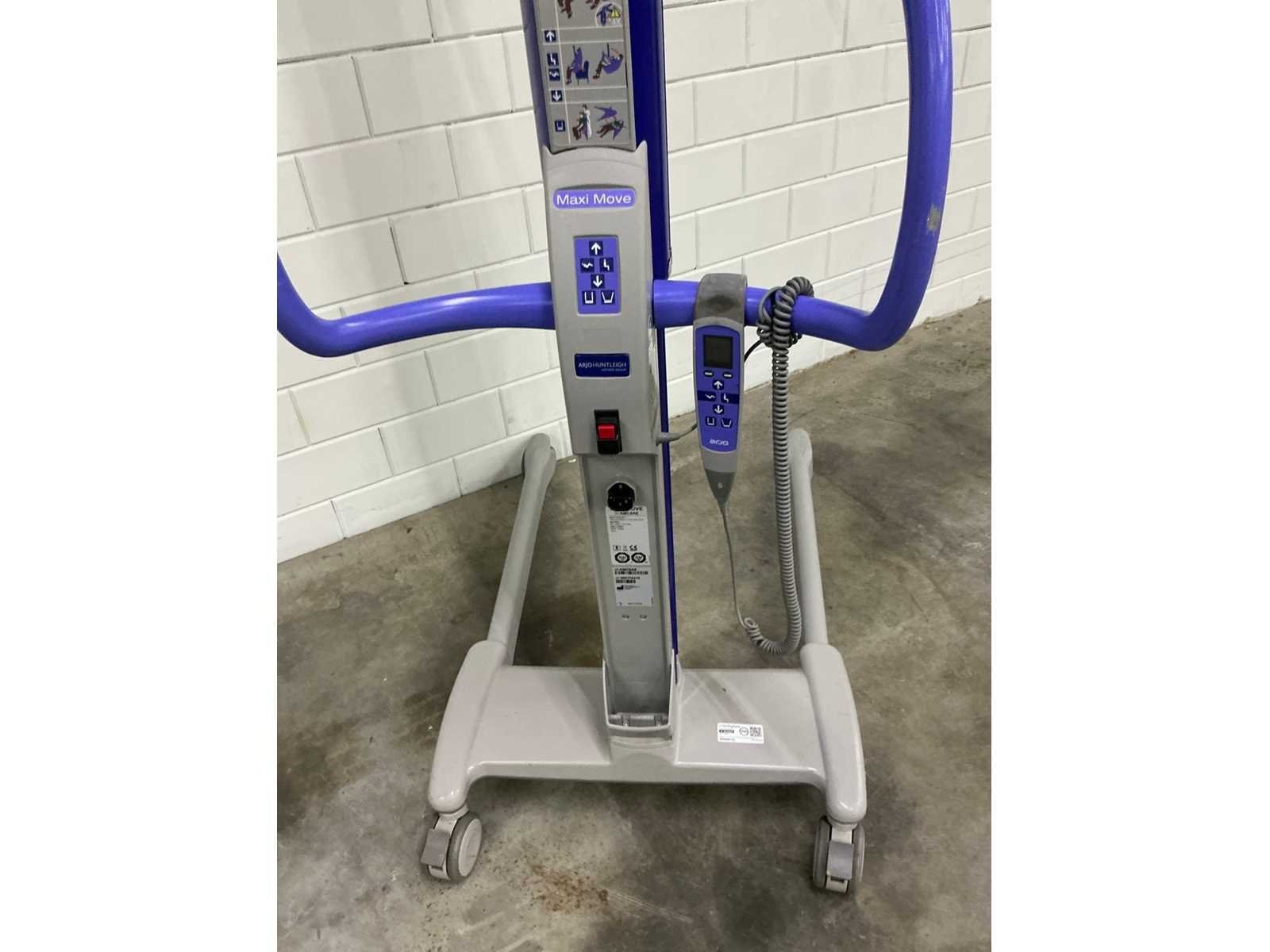 Max. veilige tilbelasting 227 kg, max. veilige tilbelasting wanneer uitgerust met verlengde tilarm 130 kg ,gewicht tillift (met tiljuk) 70 kg, maximale tilhoogte 1.575 mm, minimale tilhoogte 225 mm, bereik bij tillen 1.350 mm, min. hoogte bij opslag 1.402 mm, breedte onderstel bij gesloten poten 718 mm, breedte onderstel bij open poten 1.196 mm, breedte poten gesloten 578 mm, breedte poten open 1.074 mm, lengte tillift 1.118 mm, draaicirkel 1.222 mm, accu 24 V, noodstopknop en schakelaar voor omlaag brengen bij systeemuitval, automatische uitschakeling indien de lift bij het omlaag brengen een obstakel raakt, zwenkwielen met lage frictie, de achterste twee voorzien van rem, accu ontbreekt Merk: Arjo Model: Maxi Move Lengte: 73cm Breedte: 113cm Hoogte: 220cm