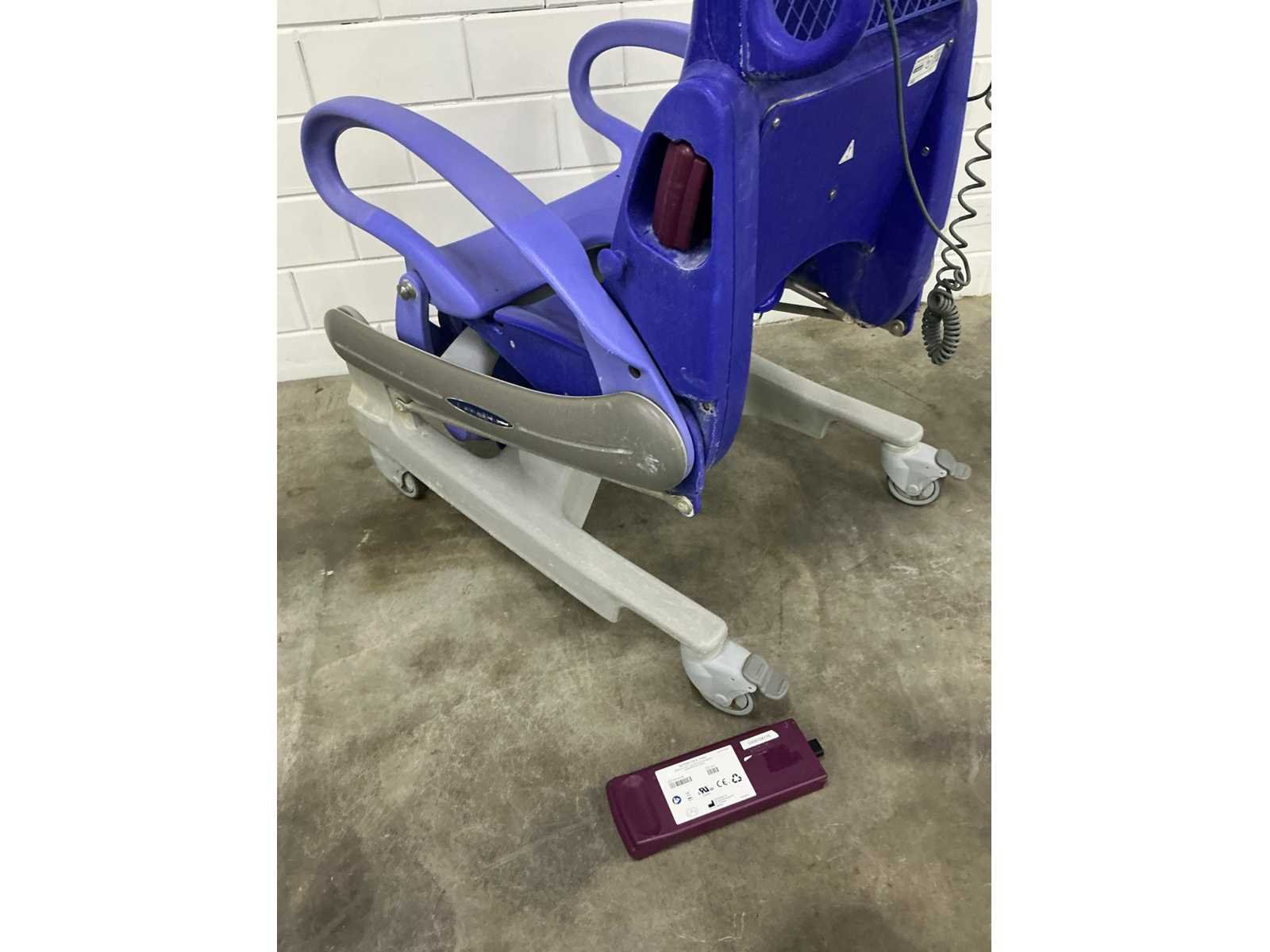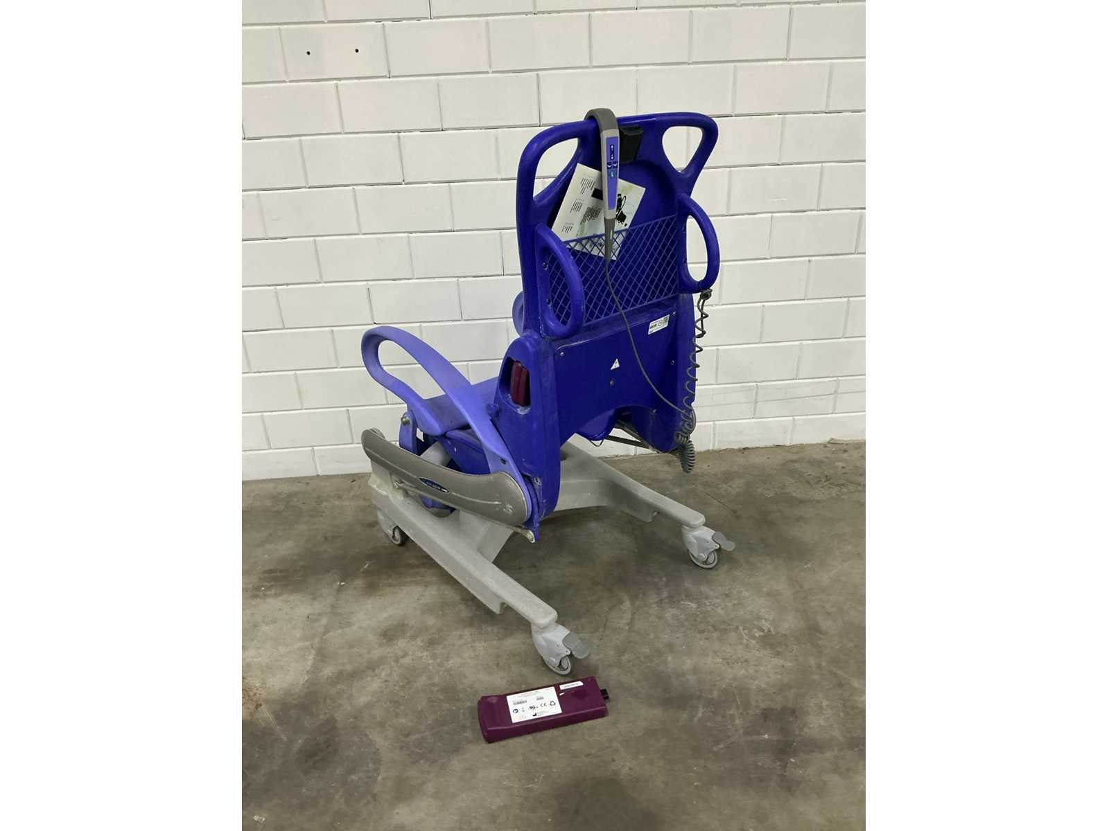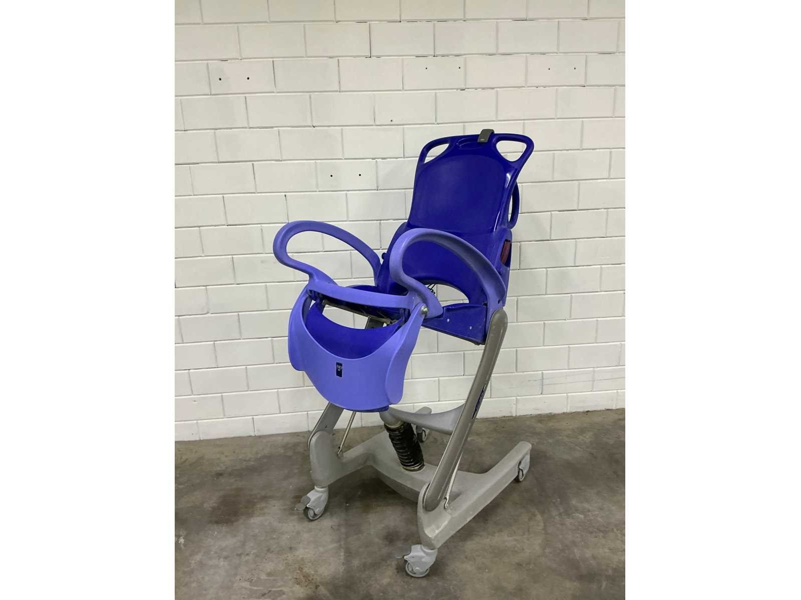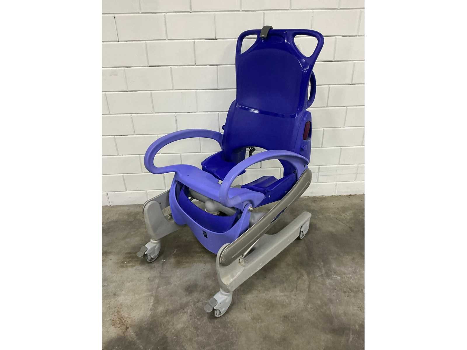 In hoogte verstelbare douchestoel toiletstoel, waarmee één zorgverlener op een ergonomische werkhoogte dagelijkse verzorgingstaken, zoals douchen, toiletgang en pedicure, kan uitvoeren, veilige belasting: 136 kg, gewicht: 64 kg, tilbereik (stoel): 55 cm, hoogte zitting, laagste stand: 51 cm, maximale algehele lengte: 152 cm, maximale algehele breedte: 65 cm Totale hoogte, rechtopstaande stand: 123 cm, totale lengte, rechtopstaande stand: 94 cm, onderstel, max. breedte: 64 cm, onderstel, breedte tussen poten: 50,8 cm, extra accu, zonder adapter Merk: Arjo Model: Carendo Lengte: 65cm Breedte: 96cm Hoogte: 156cm