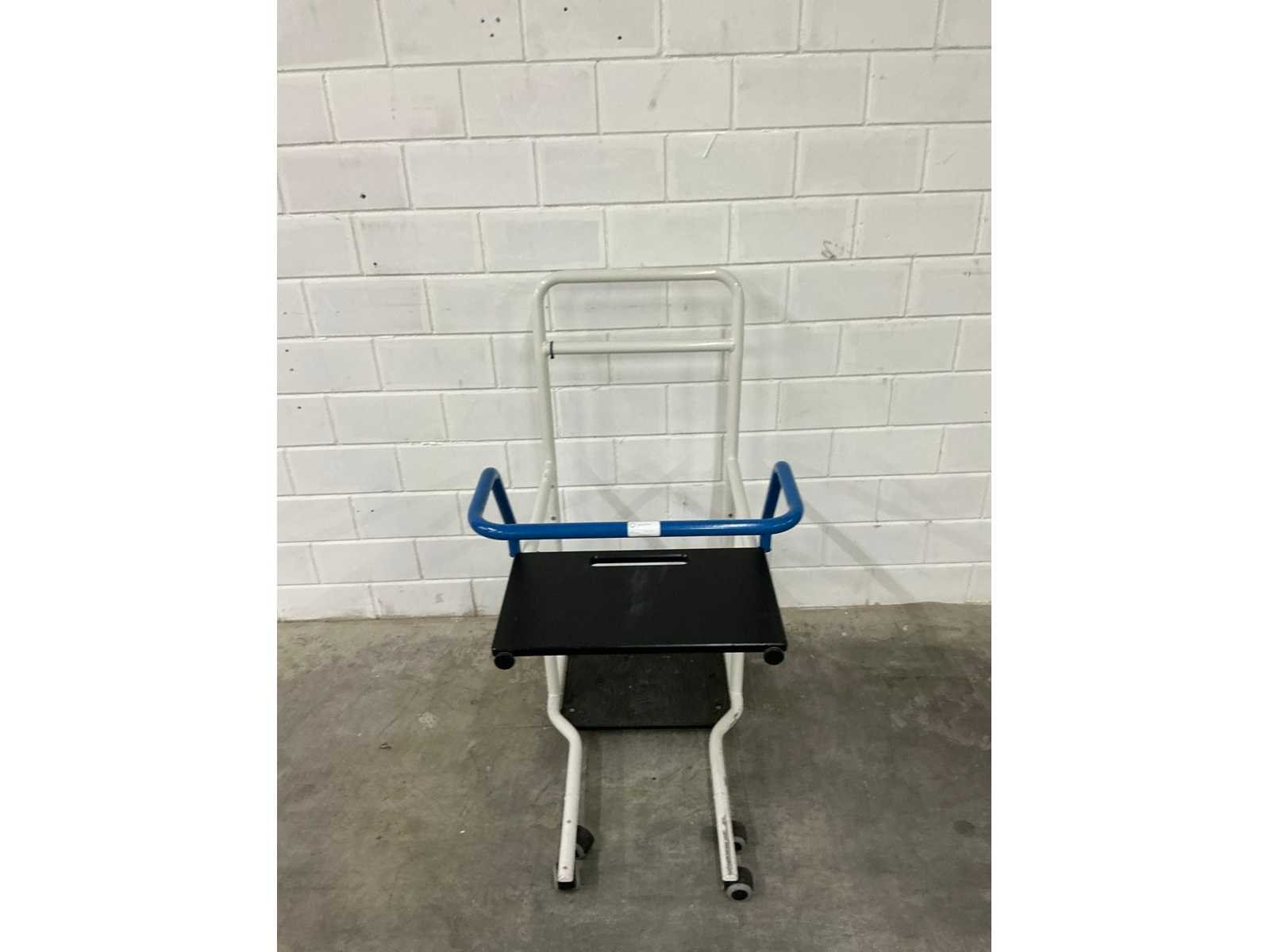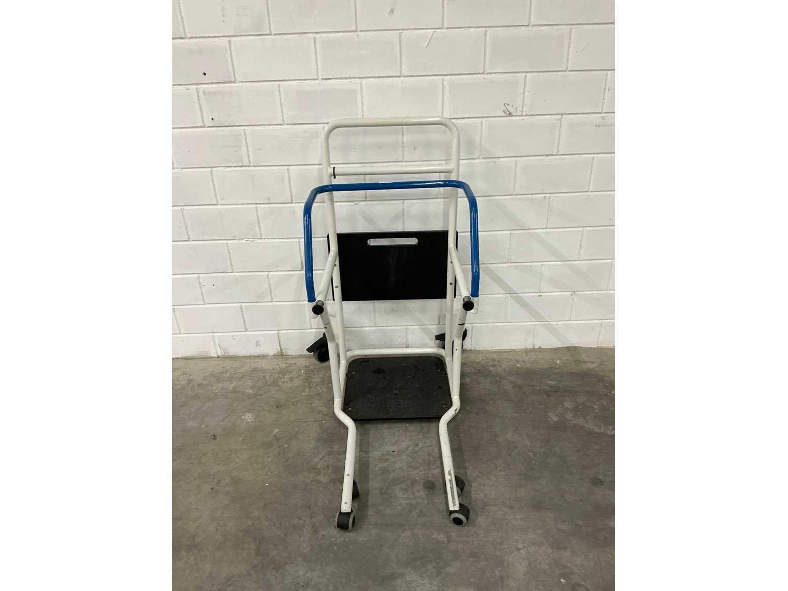 Verrijdbare opstahulp, rvs,maximaal gebruiksgewicht 130 kg. Merk: United Care Model: Bea 2 Lengte: 55cm Breedte: 80cm Hoogte: 110cm