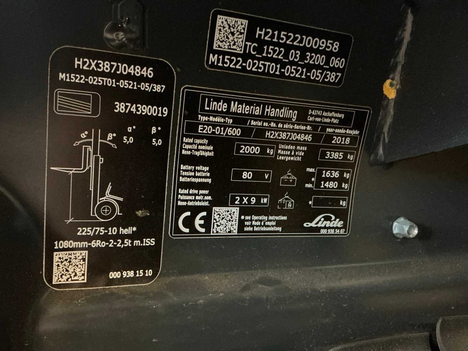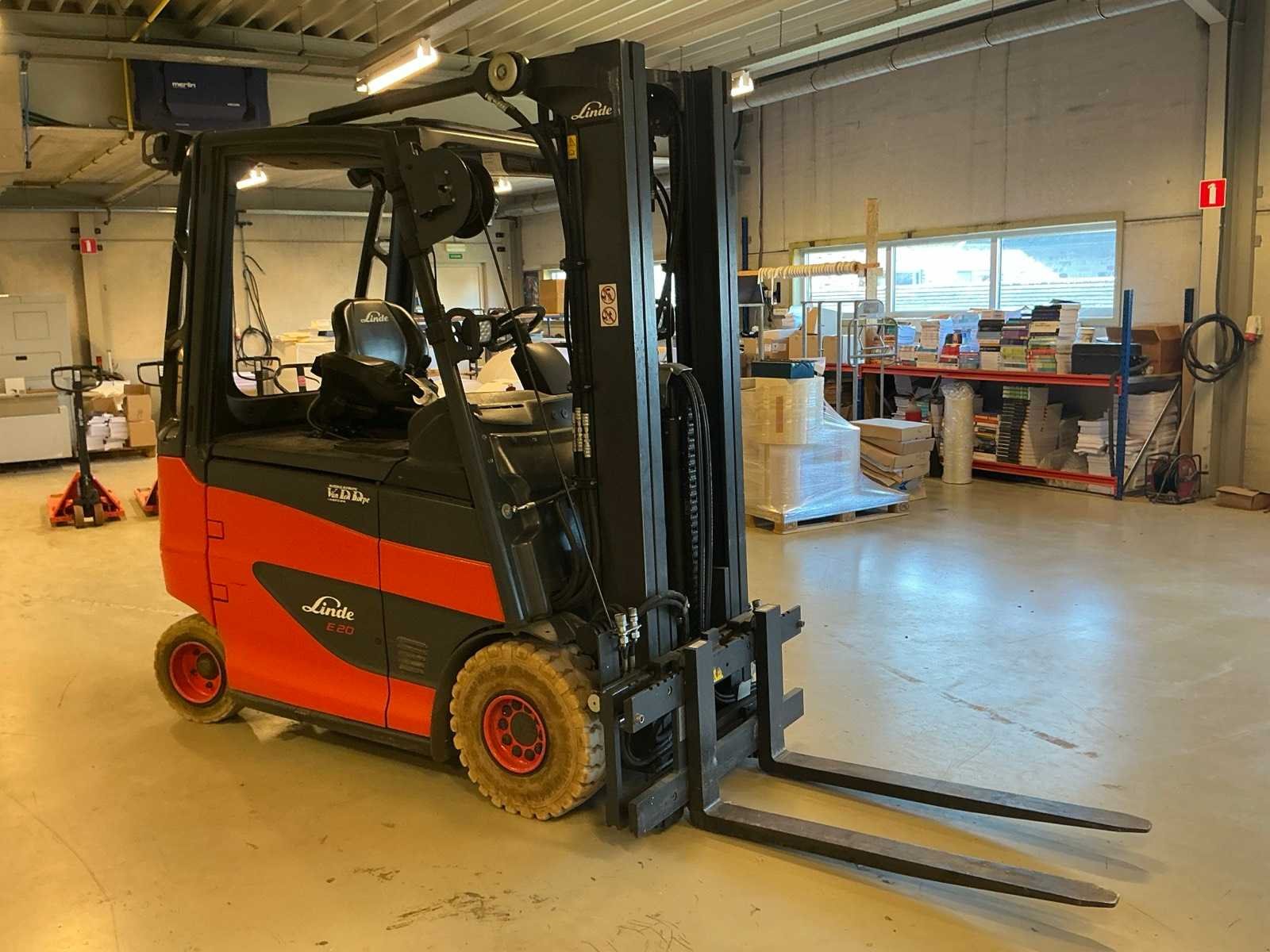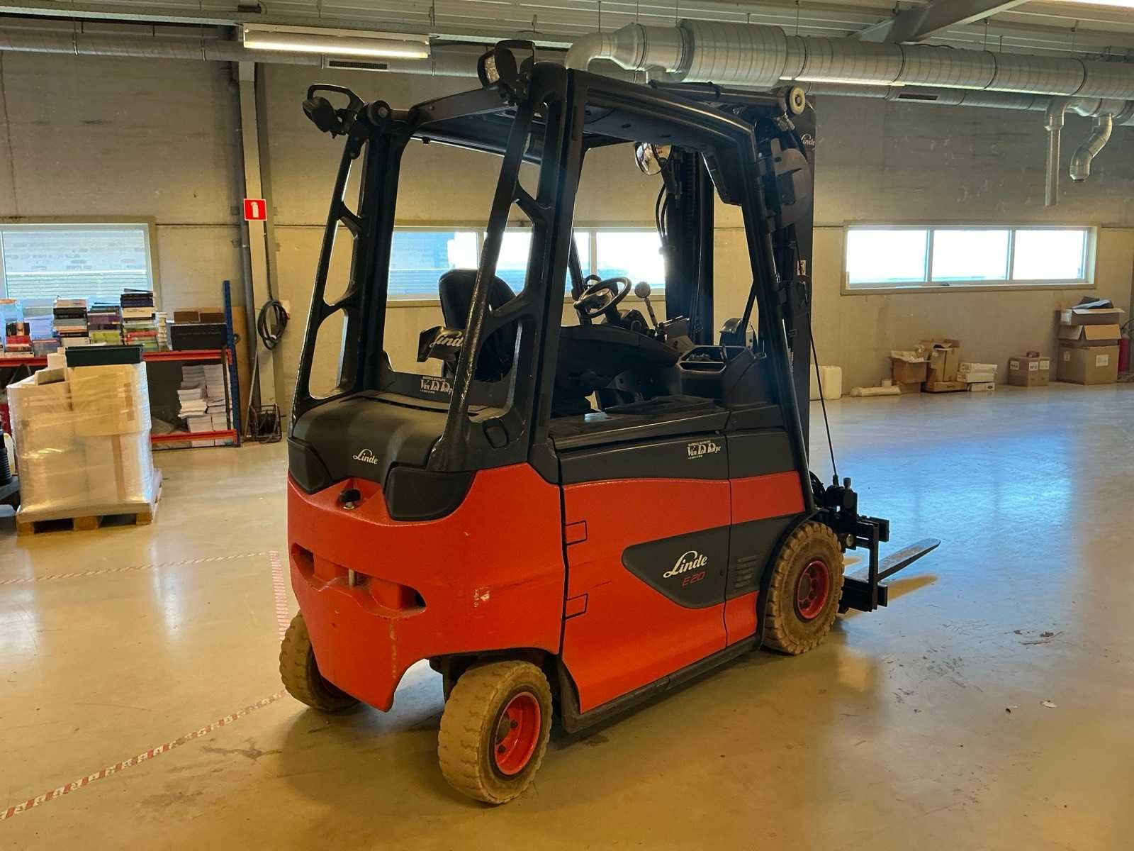 Compleet met acculader Hoppecke 380V, door klant zelf vakkundig te demonteren van de muur, Olieverlies aan hefinrichting Merk: Linde Type: E20 Bouwjaar: 2018 Serienummer: H2X387J04846 Brandstof: Elektrisch Aantal wielen: 4 Afgelezen urenstand: 551 Accu lader: true Side-shift: true Duplex mast: true Eigen gewicht: 3385kg Hefvermogen: 2000kg Lepellengte: 1150mm Vol rubber banden: true Minimale doorrijhoogte: 2350mm