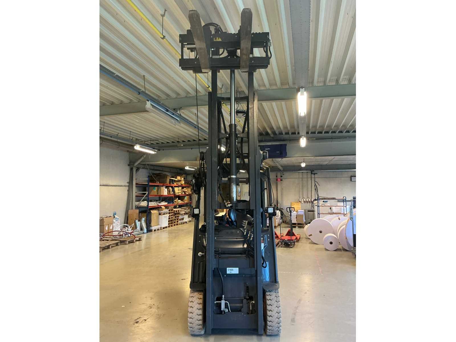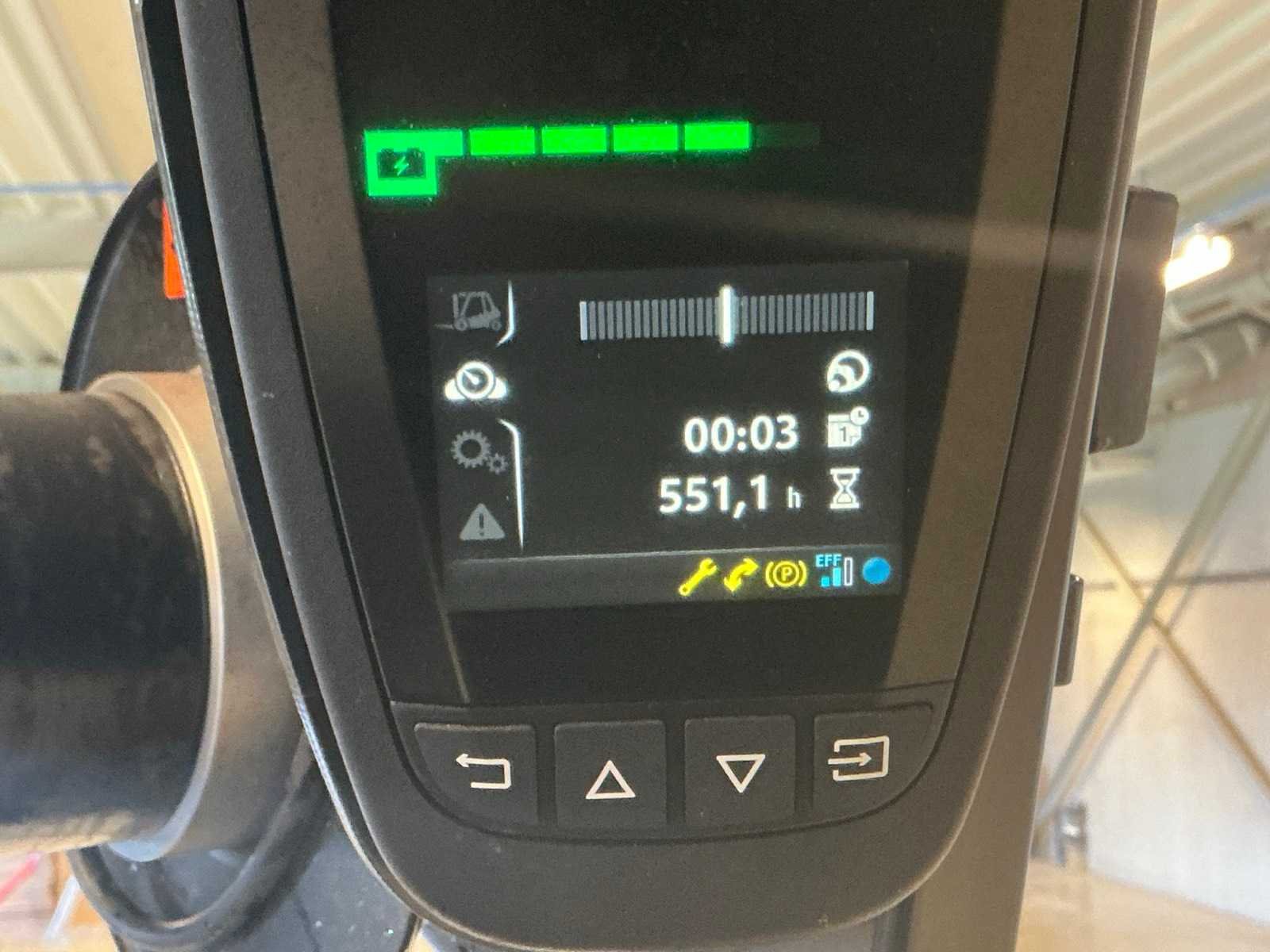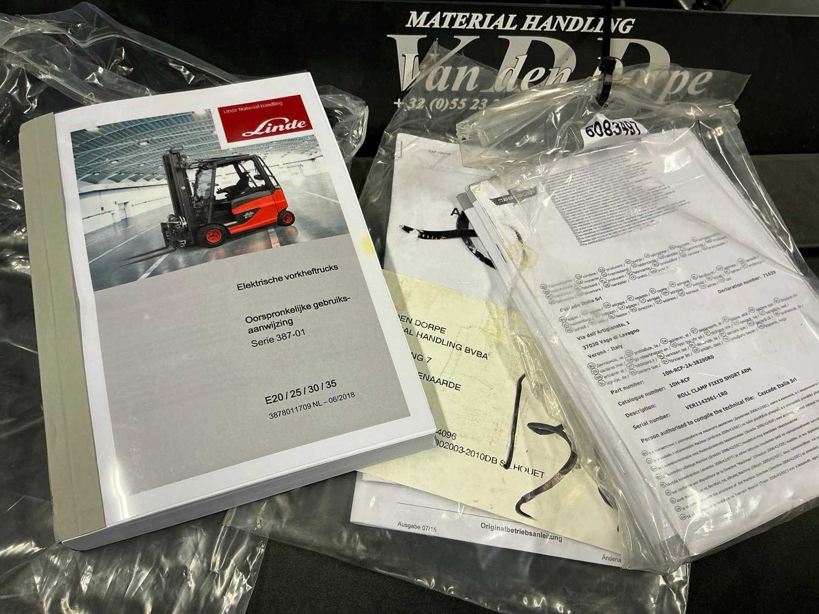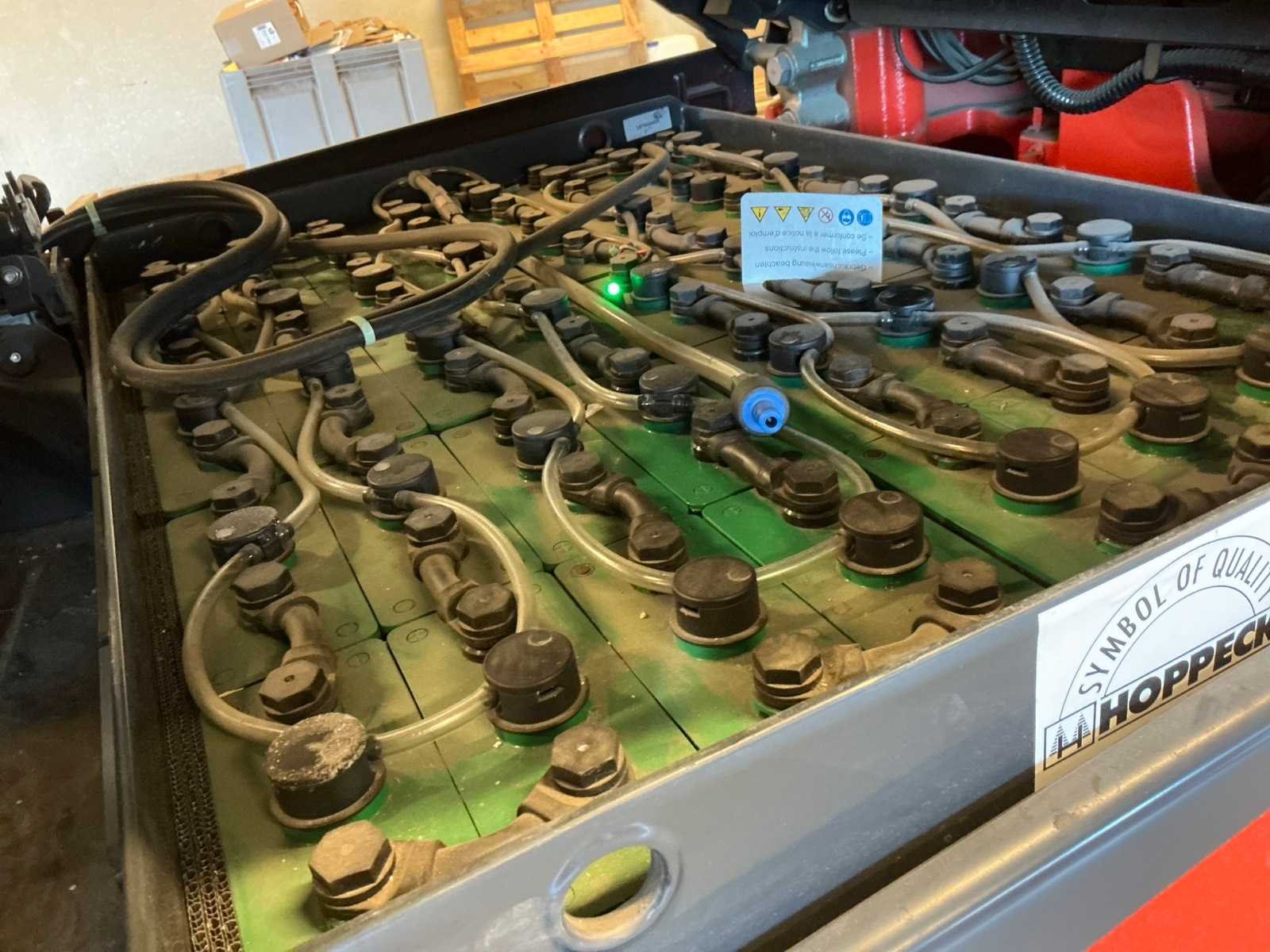 Compleet met acculader Hoppecke 380V, door klant zelf vakkundig te demonteren van de muur, Olieverlies aan hefinrichting Merk: Linde Type: E20 Bouwjaar: 2018 Serienummer: H2X387J04846 Brandstof: Elektrisch Aantal wielen: 4 Afgelezen urenstand: 551 Accu lader: true Side-shift: true Duplex mast: true Eigen gewicht: 3385kg Hefvermogen: 2000kg Lepellengte: 1150mm Vol rubber banden: true Minimale doorrijhoogte: 2350mm
