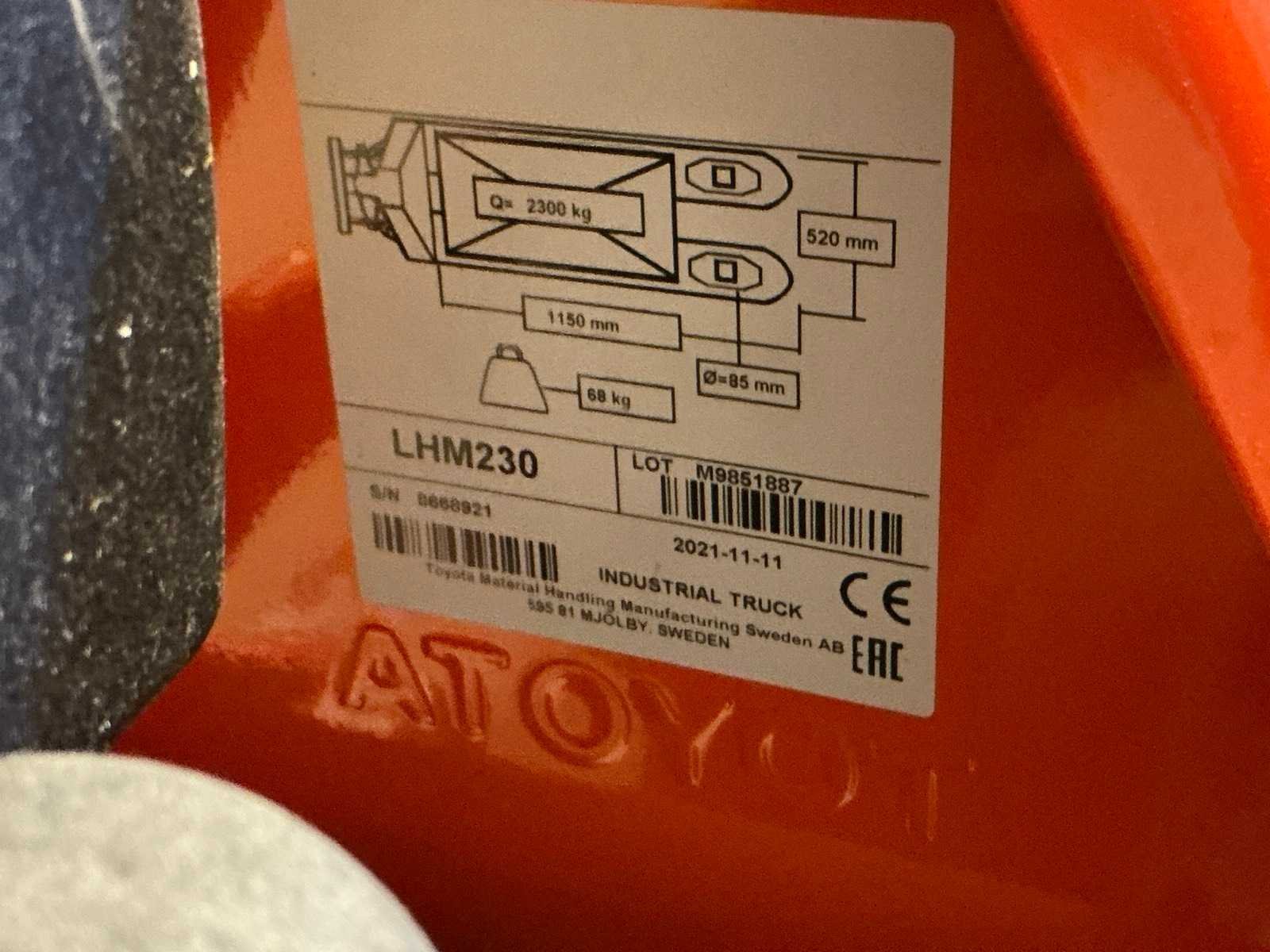 2021 toyota/bt lhm230 hand hydraulische palletwagen