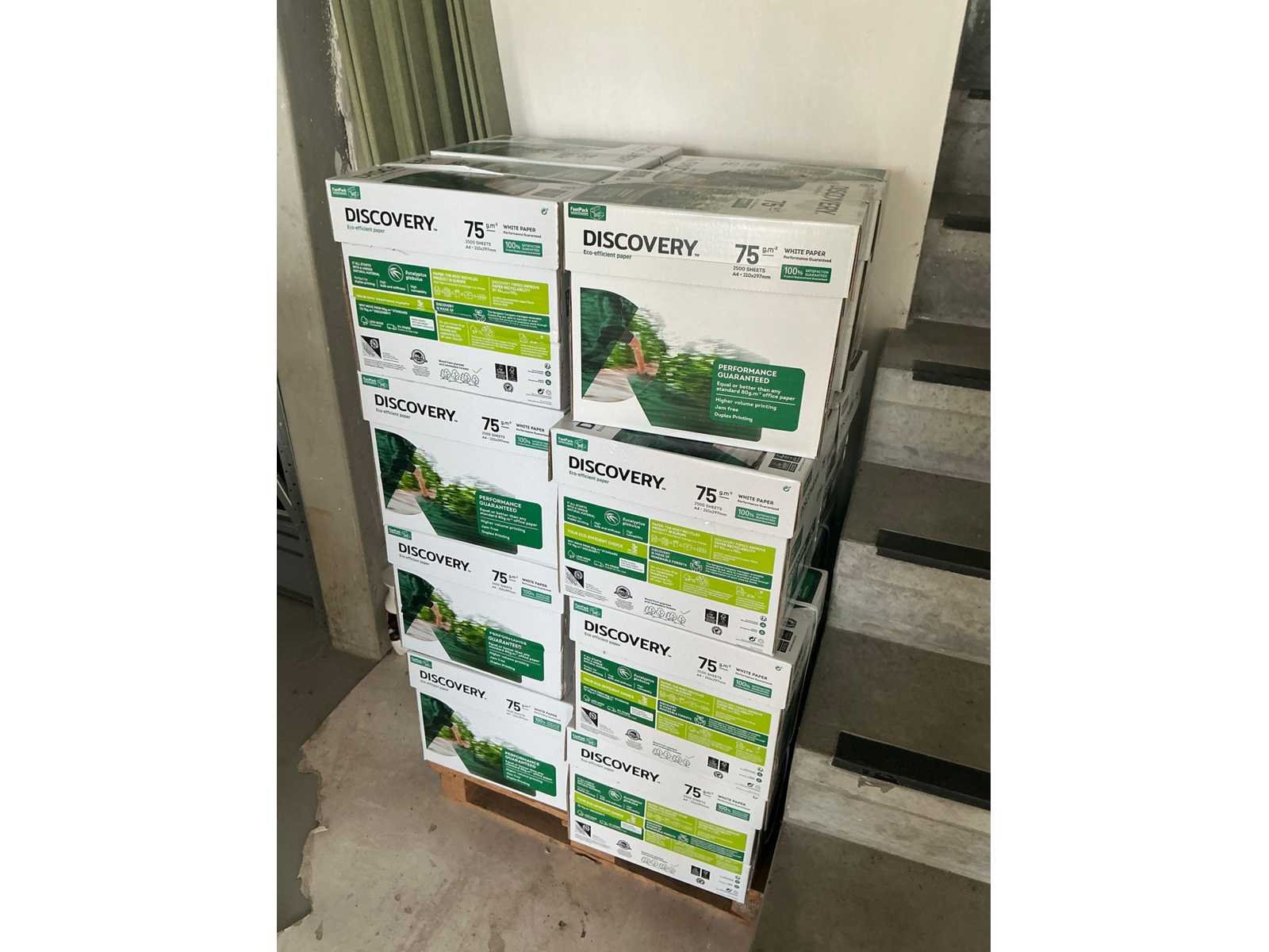 Liggende in gesloten originele verpakking in 16 dozen Merk: FastPack Model: Discovery A4 Product type: 75 g.m-2 Kleur: Wit Lengte: 297 Breedte: 210