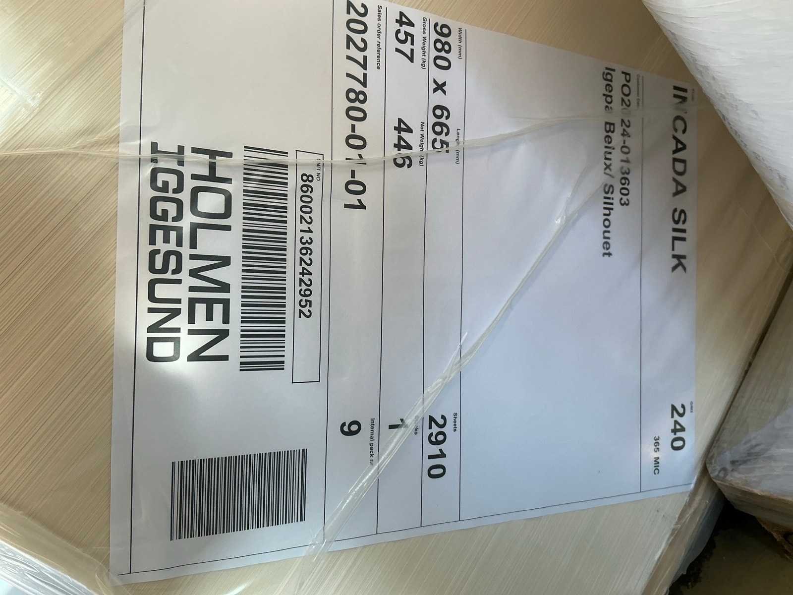 Liggende in gesloten originele verpakking op 1 pallet Merk: Holmen Iggesund Gewicht: 457kg Type: 980 x 665mm