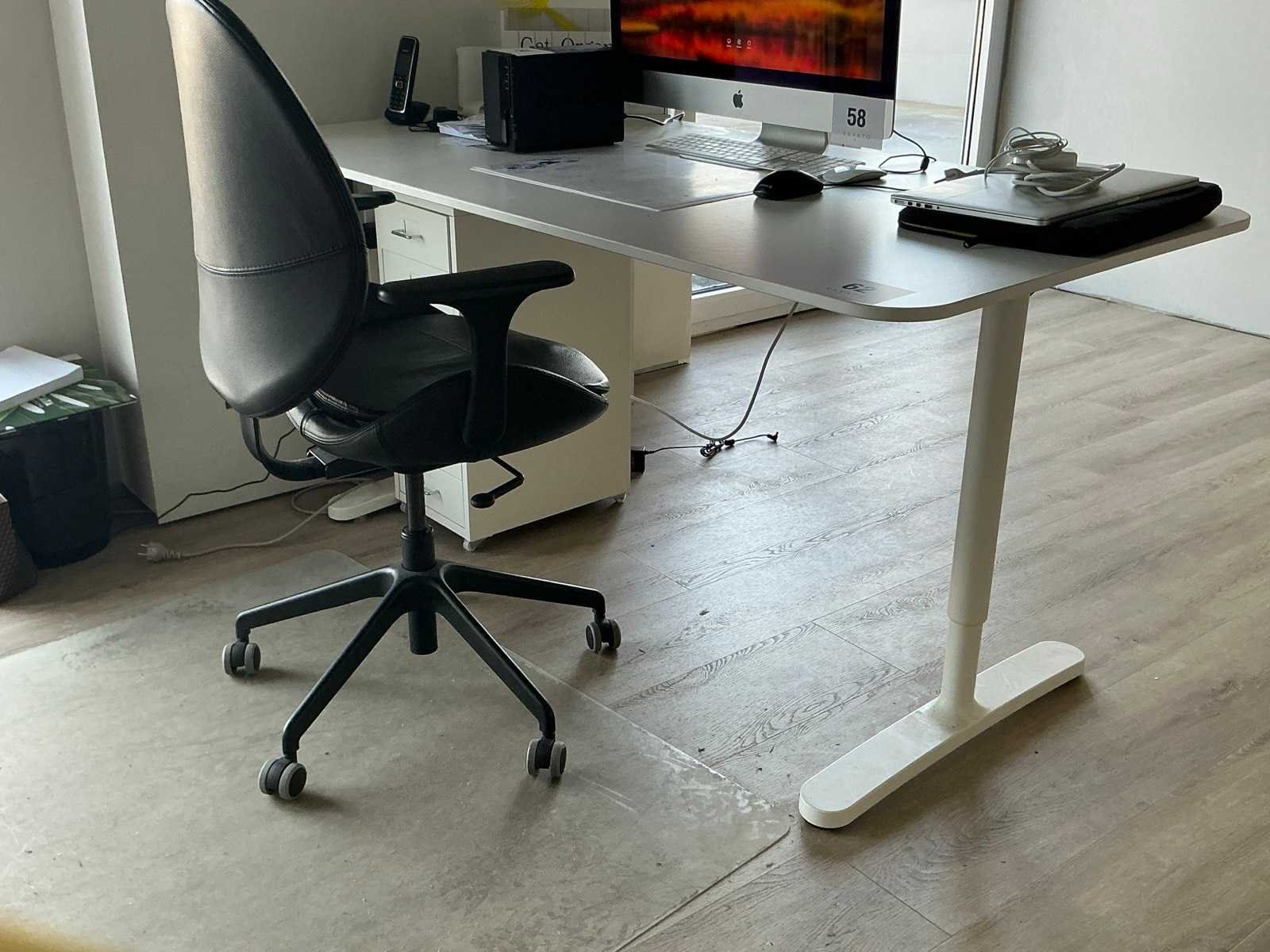 Voorzien van melaminehouten bovenblad en metalen ladekast voorzien van 6 laden, Compleet met kunstlederen typistestoel, Locatie: 1e verdiep Lengte: 160cm Breedte: 80cm Hoogte: 76cm Materiaal: Metaal