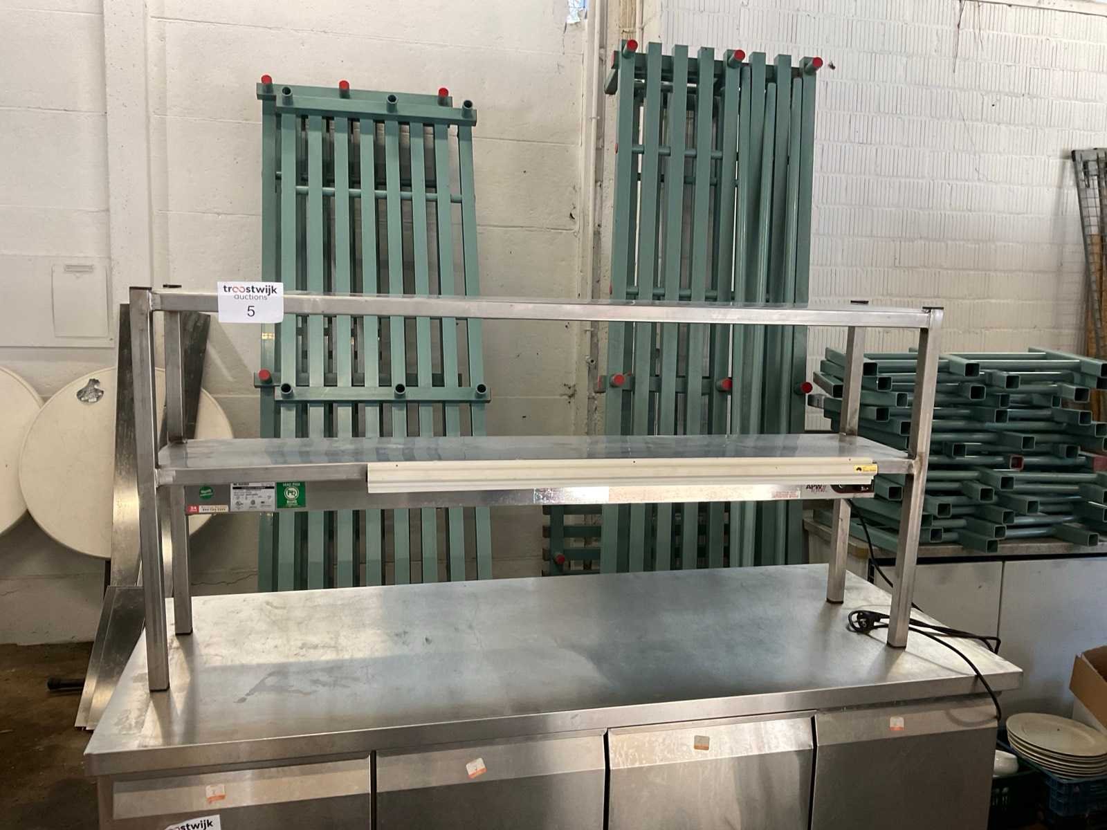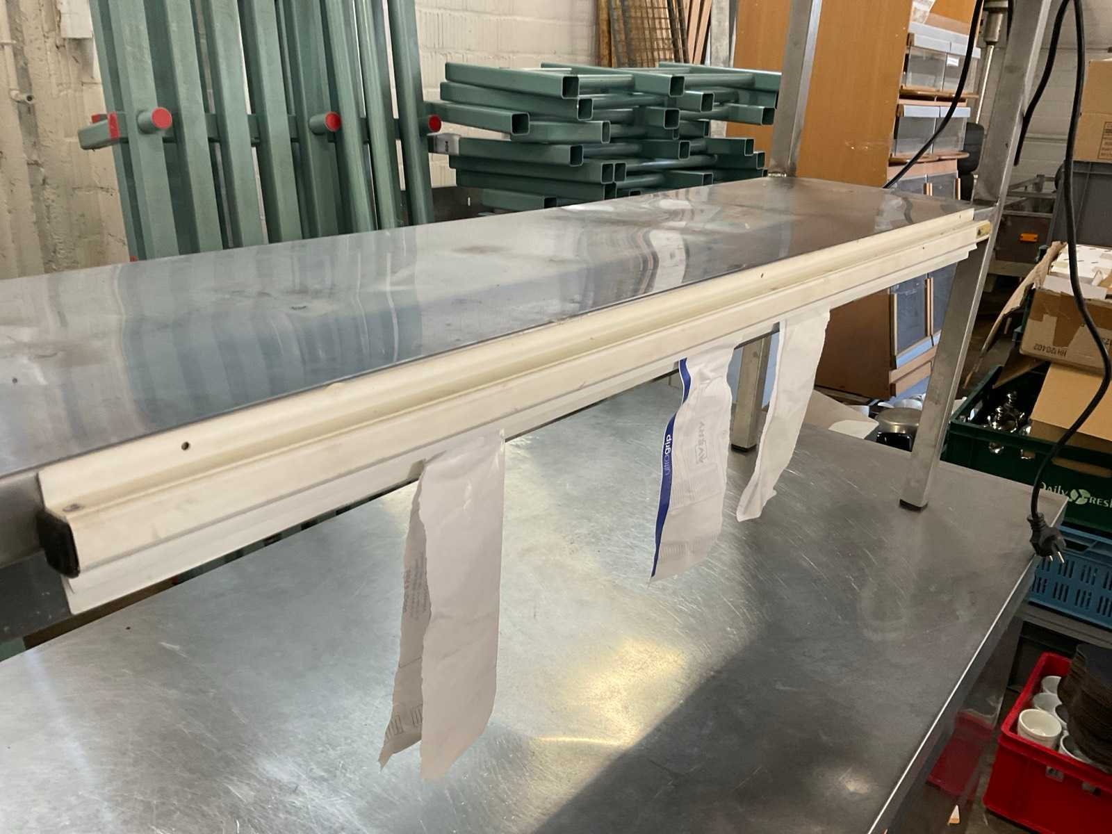 Chef-rek RvS met warmtebrug . Werkt goed Met vooraan bonnenhouder Aansluiting: 220V Rvs: true Totale afmeting L: 150cm Totale afmeting Breedte: 30cm Totale afmeting Hoogte: 71cm Leveringsvoorwaarden: Niet gefundeerd - onverpakt