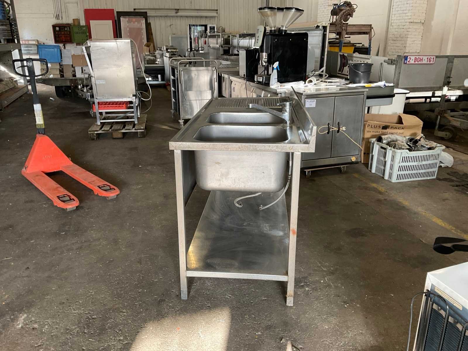 Werkende kraan goede staat Spoelbak 400x500X300 diep Materiaal: Rvs Aantal spoelbakken: 2pcs Afmeting spoelbak: 500cm Spoelkraan: true Lengte: 1600cm Hoogte: 910cm Leveringsvoorwaarden: Niet gefundeerd - onverpakt