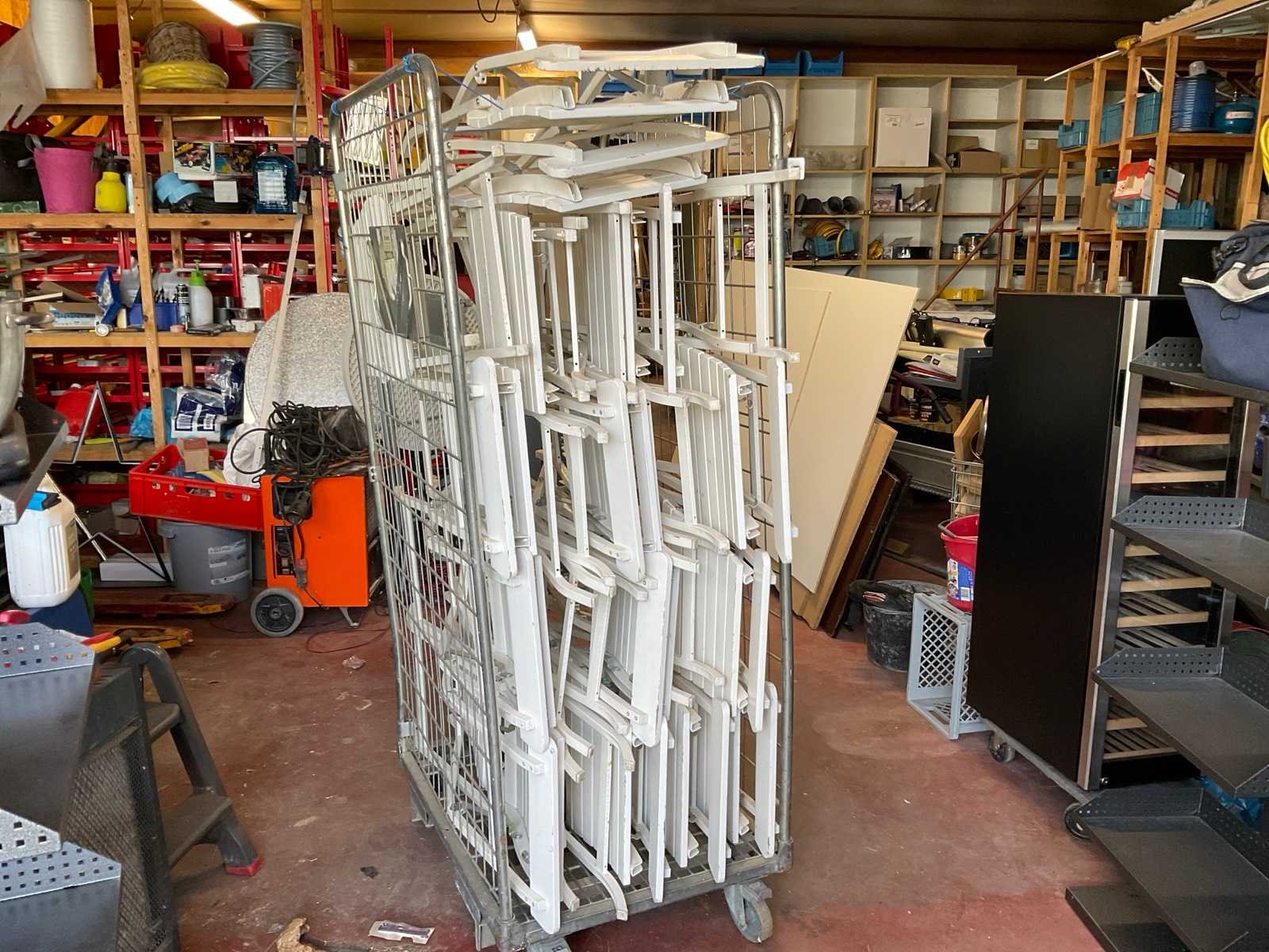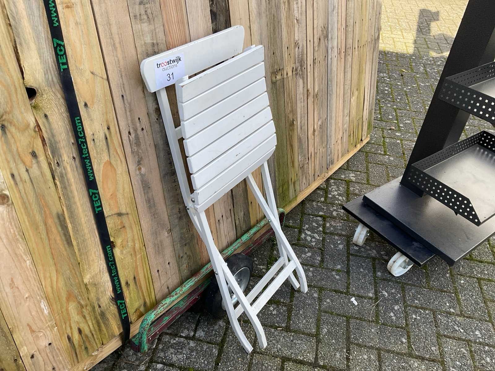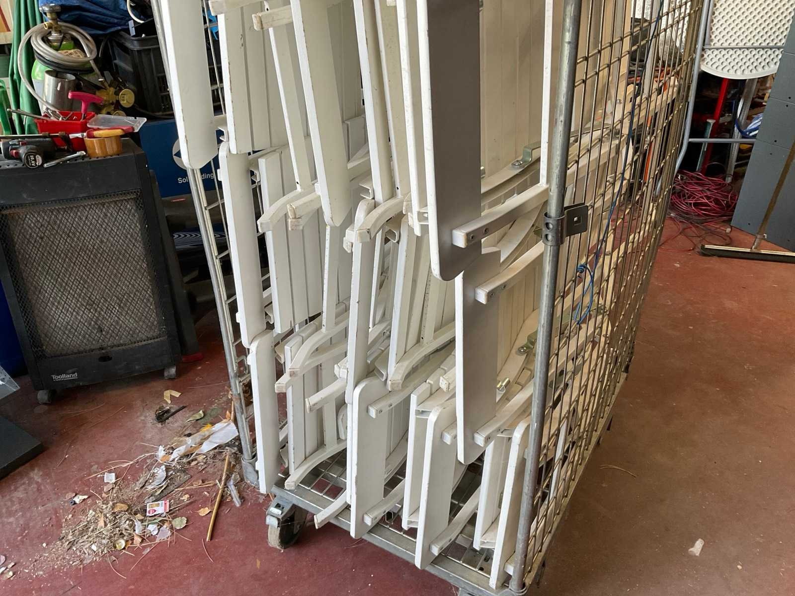 Zware stevige plooistoel voor Horeca. (Rolkar niet inbegrepen) Kleur: Wit Leveringsvoorwaarden: Niet gefundeerd - onverpakt