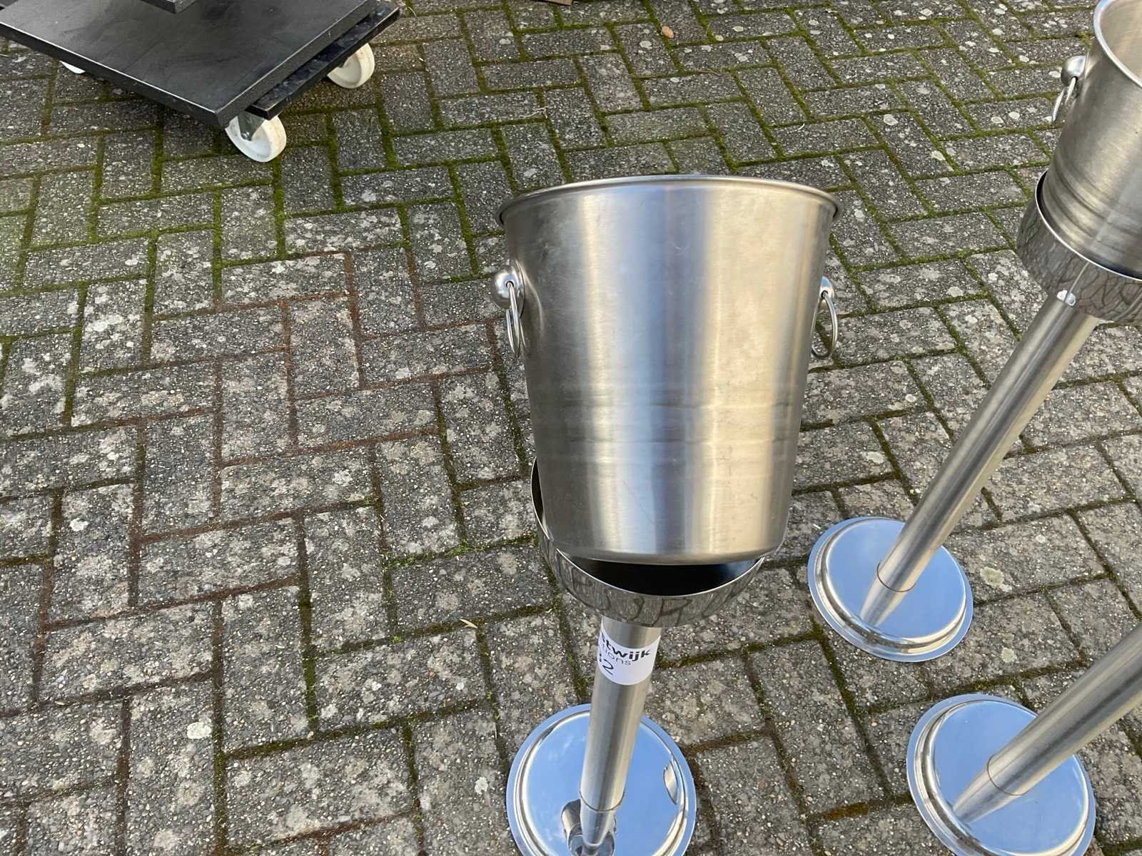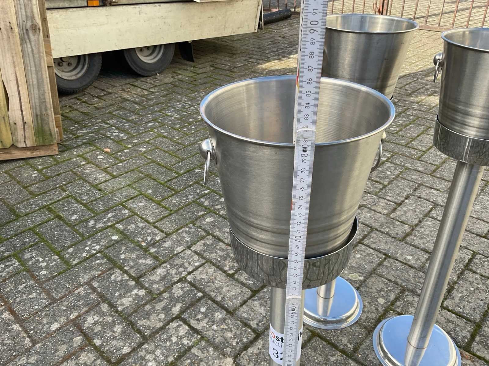 Mooie staanders met ijsemmer voor wijn of champagne Materiaal: Rvs Breedte: 210cm Hoogte: 800cm Leveringsvoorwaarden: Niet gefundeerd - onverpakt