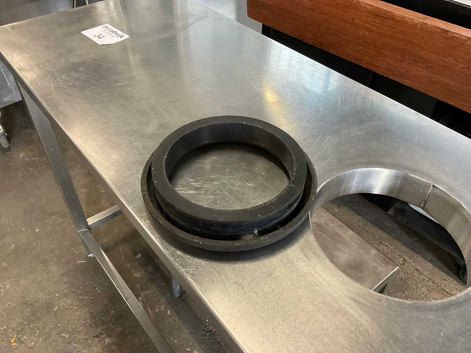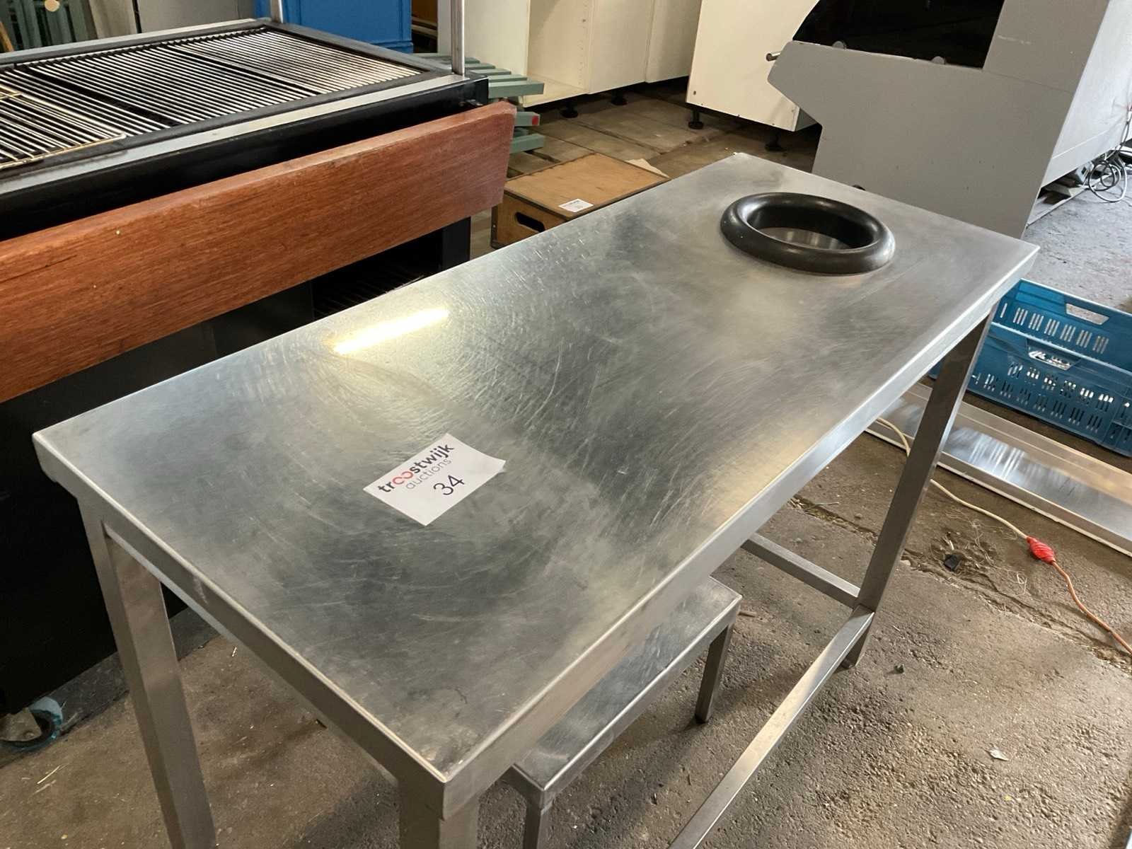 Rvs werktafel met ingebouwde ring voor voedsel afval. Rvs tafel onderstel 500x500 Afmeting l: 1200mm Afmeting b: 500mm Afmeting h: 900mm