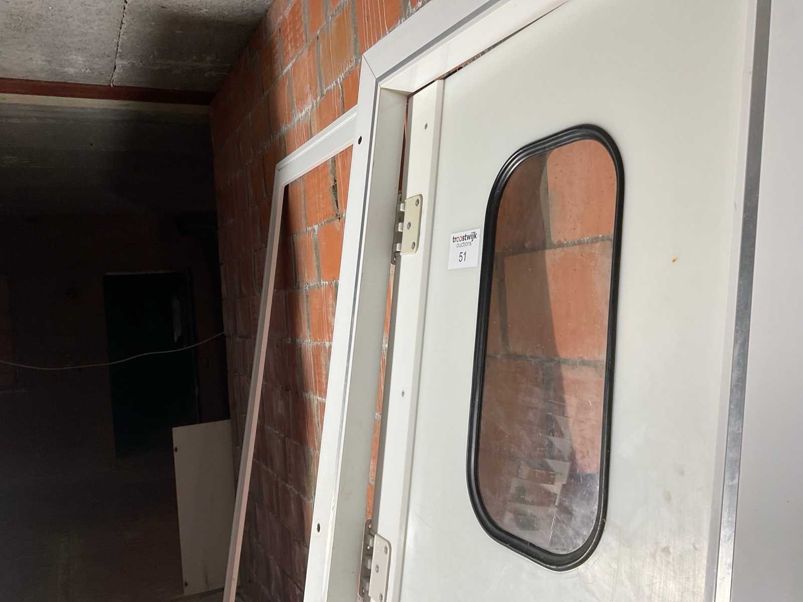 Swing klapdeur in kunststof. Compleet met gedemonteerd aluminium klik omkasting en chambranten. Deur: h 2050mm x br. 870mm Merk: Isobar Afmeting b: 1150mm Afmeting h: 2150mm Leveringsvoorwaarden: Niet gefundeerd - onverpakt