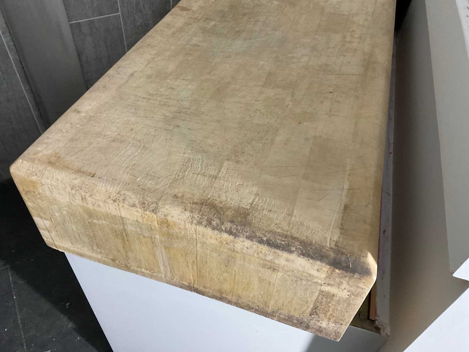 Zeer zware massieve houten blok voor vleesverwerking Totale afmeting L: 1000mm Totale afmeting Breedte: 500mm Totale afmeting Hoogte: 200mm
