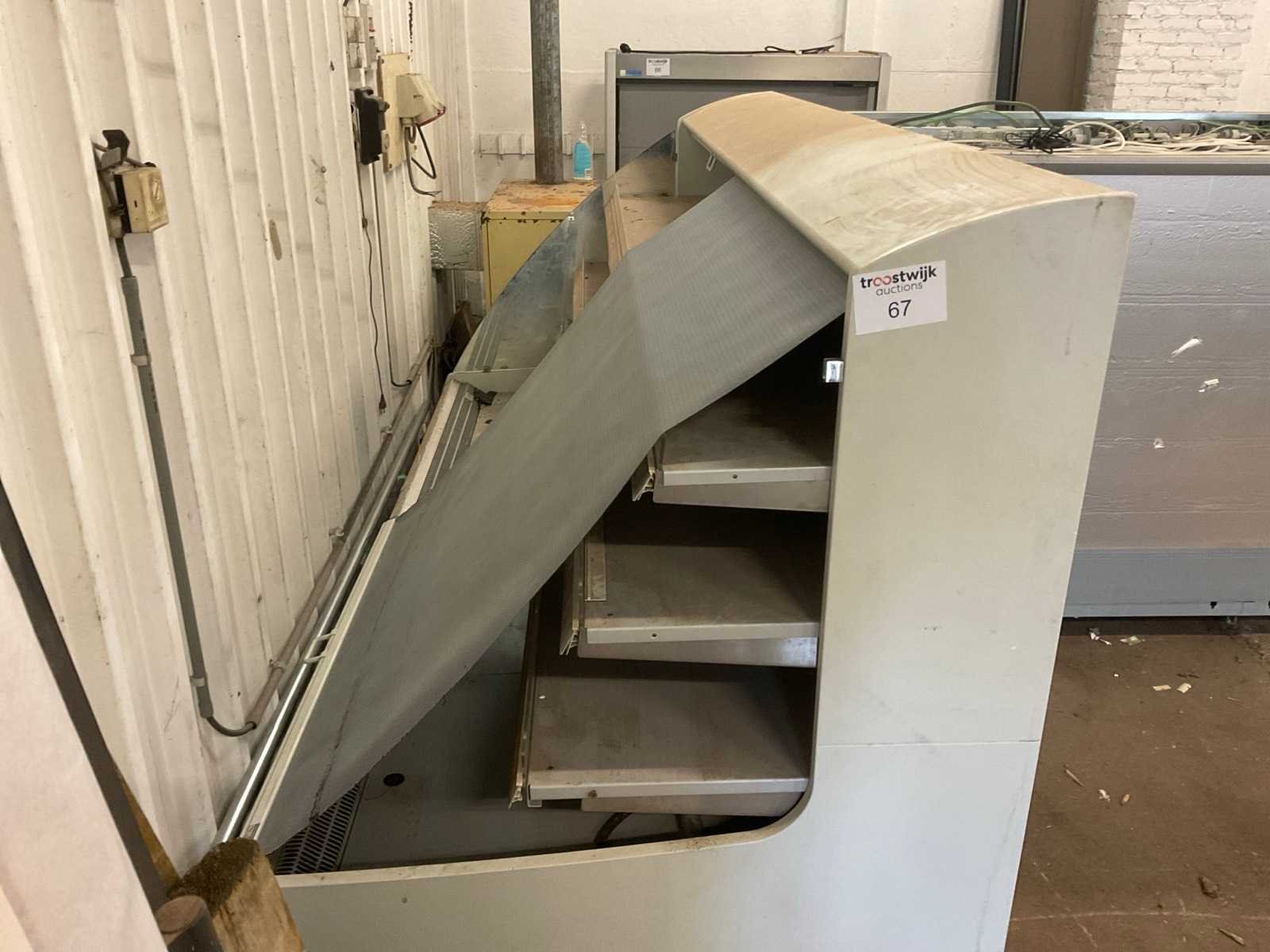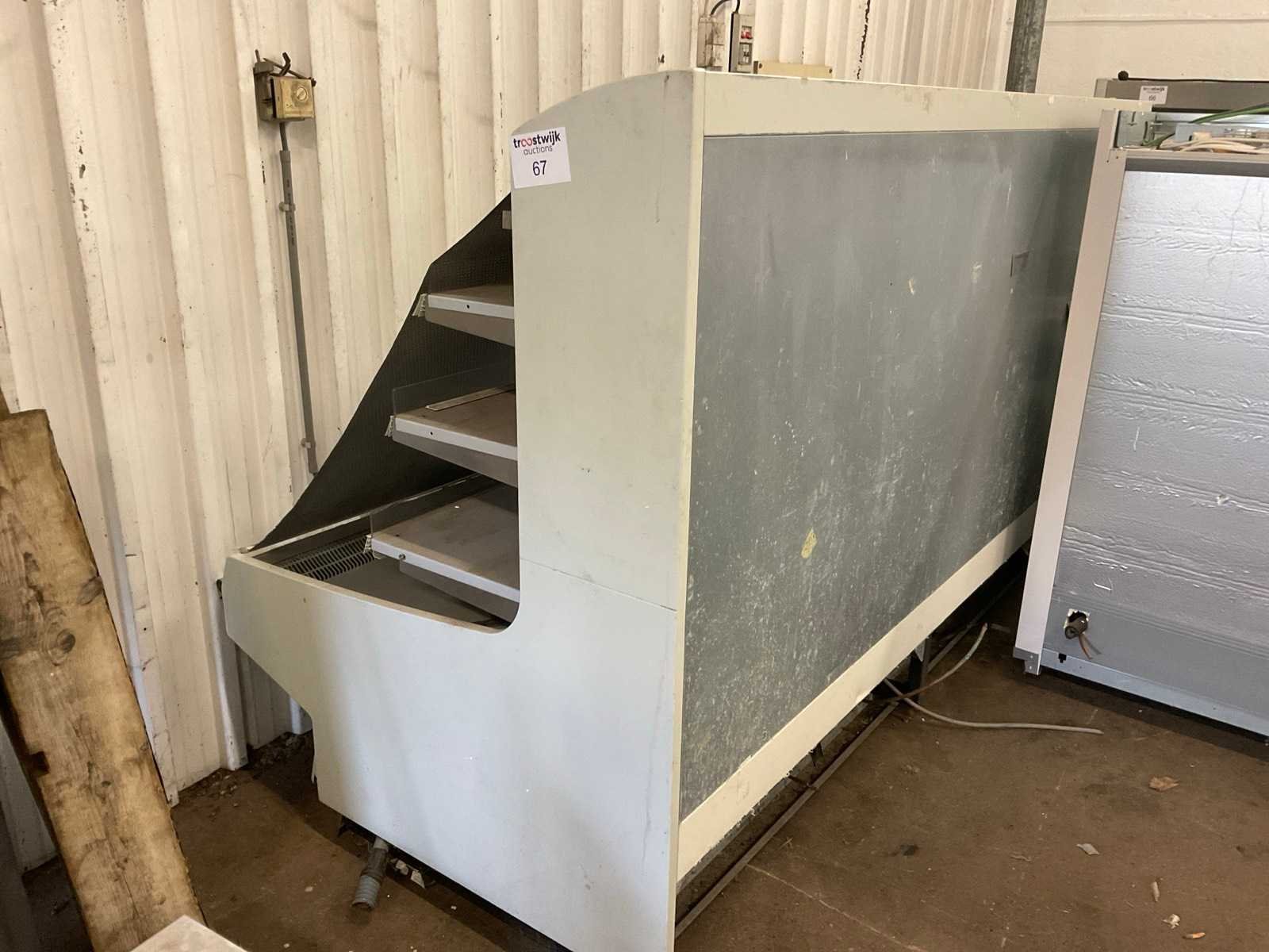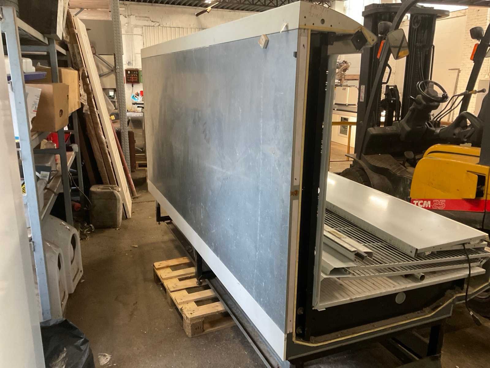 Display koeltoog in werkende staat, afsluitbaar door gordijn de 2 Frigoos stonden aan elkaar vast in de supermarkt. Elke unit is 2500mm lang Totale afmeting L: 5000mm Totale afmeting Breedte: 1250mm Totale afmeting Hoogte: 1560mm Leveringsvoorwaarden: Niet gefundeerd - onverpakt