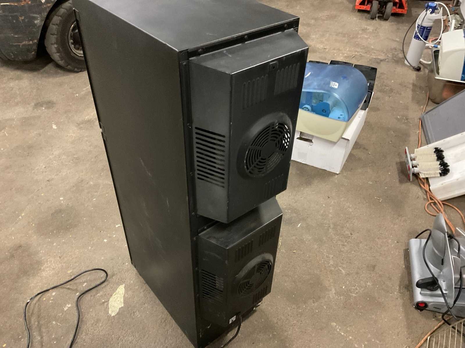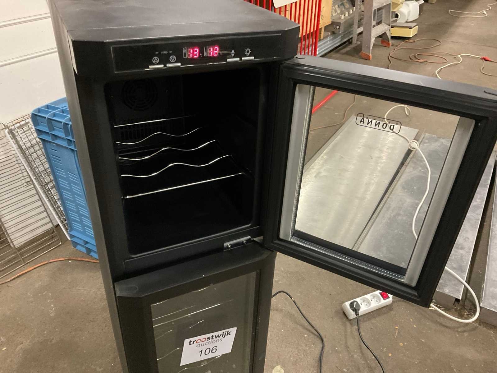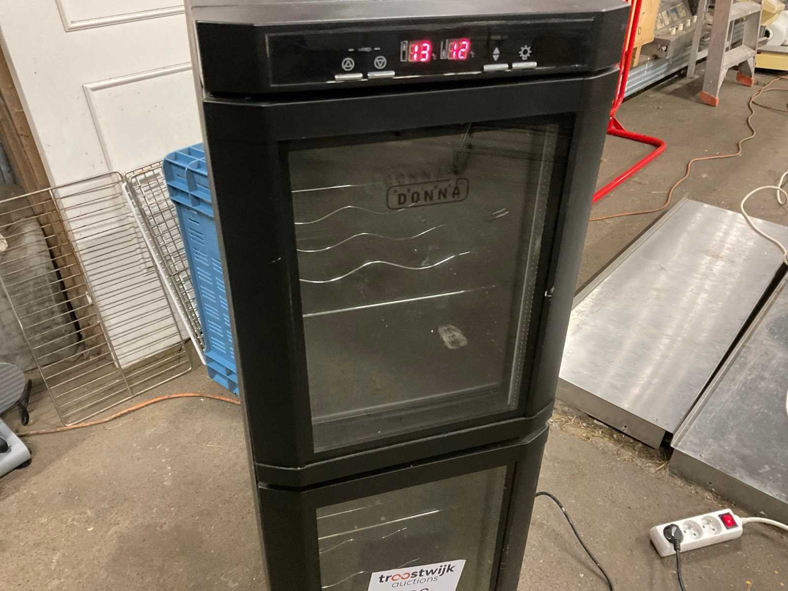 Kleine wijnklimaatkast - 2 koelcompartimenten - ventilator hoorbaar draaiend Lengte: 550 Hoogte: 1050 Breedte: 280 Digitale uitlezing: true Regelbare thermostaat: true Vrijstaand: true