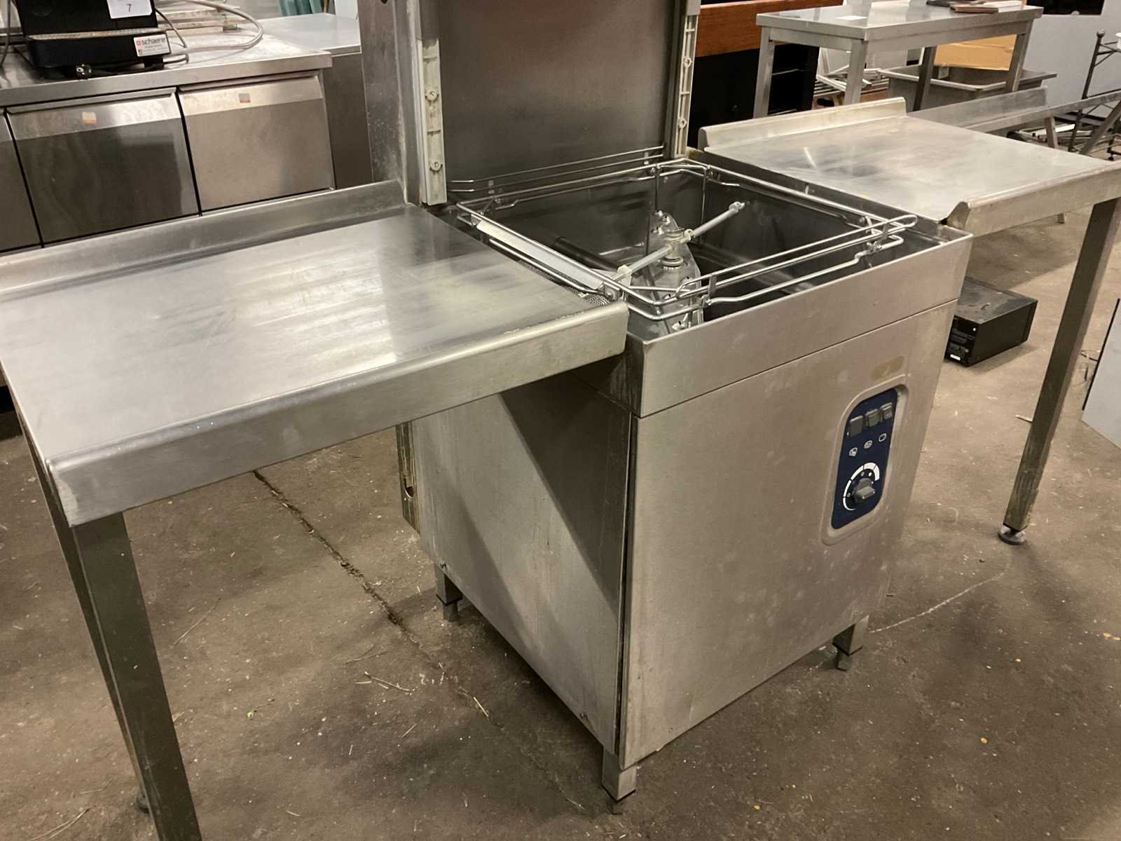 Afwasmachine met zijtafels was in gebruik tot sluiting zaak. Rvs: true Kapmodel: true Doorschuifmodel: true Analoog: true Leveringsvoorwaarden: Niet gefundeerd - onverpakt