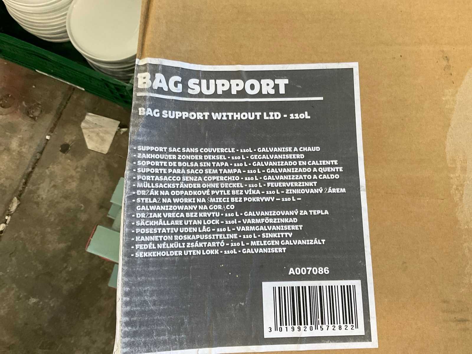 Metalen gelakte ringen voor vuilzakken buiten. Diameter 400mm Merk: Rossignol Type: Manutan Gebruikt voor papier en karton: true Gebruikt voor restafval: true Gebruikt voor groenafval: true Totale afmeting Breedte: 400mm Leveringsvoorwaarden: Niet gefundeerd - onverpakt