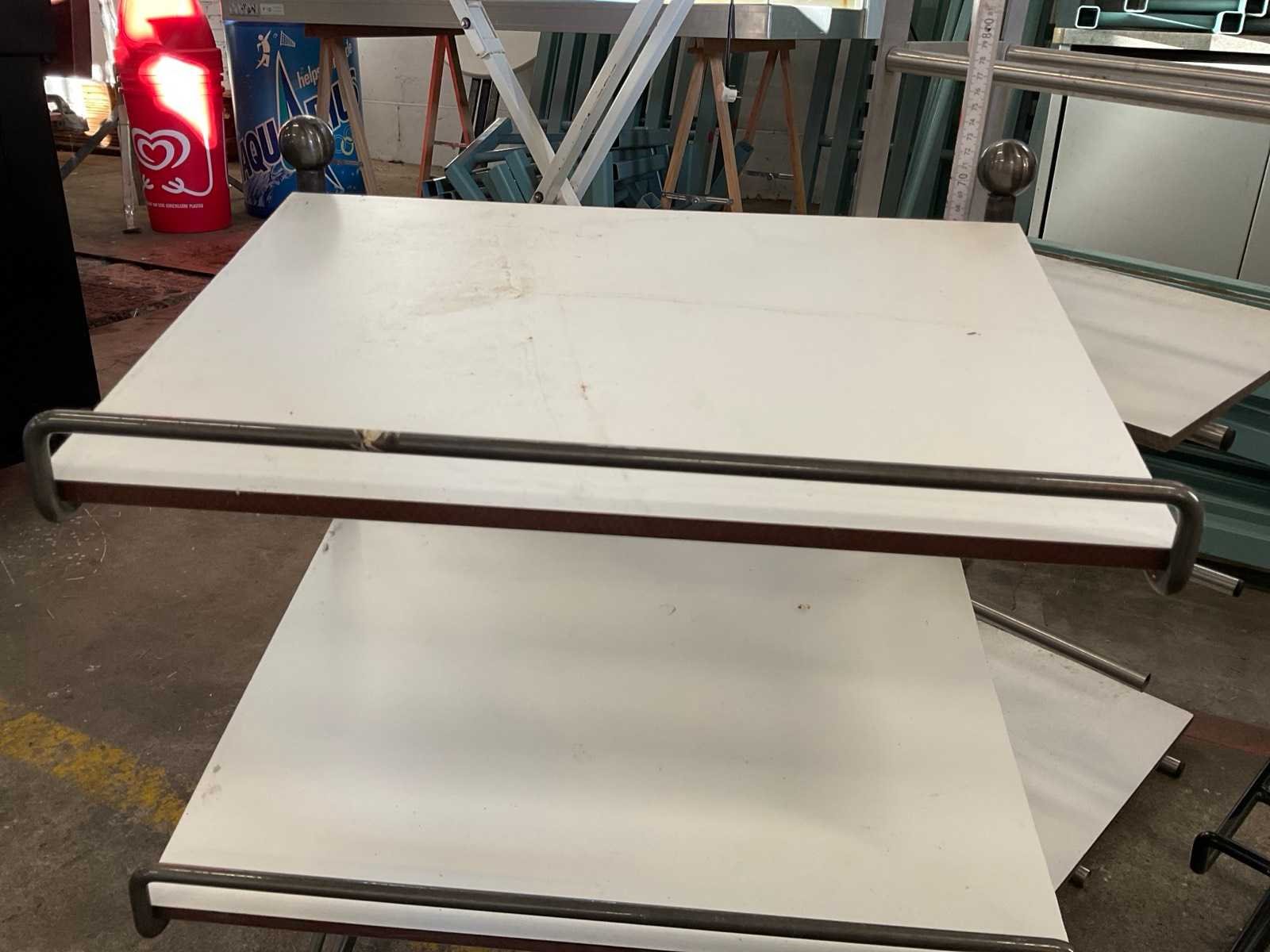 Metaal met trespa leggers (10 stuks) 2 rekjes voor tafel en 1 ophangmodel in rvs Leveringsvoorwaarden: Niet gefundeerd - onverpakt