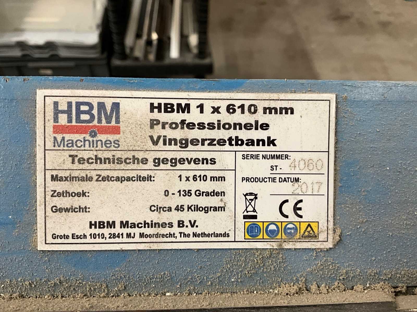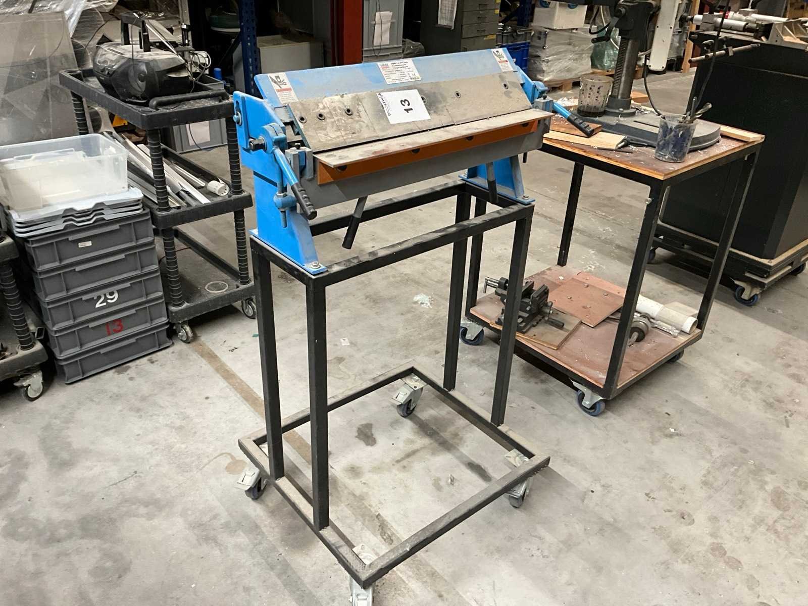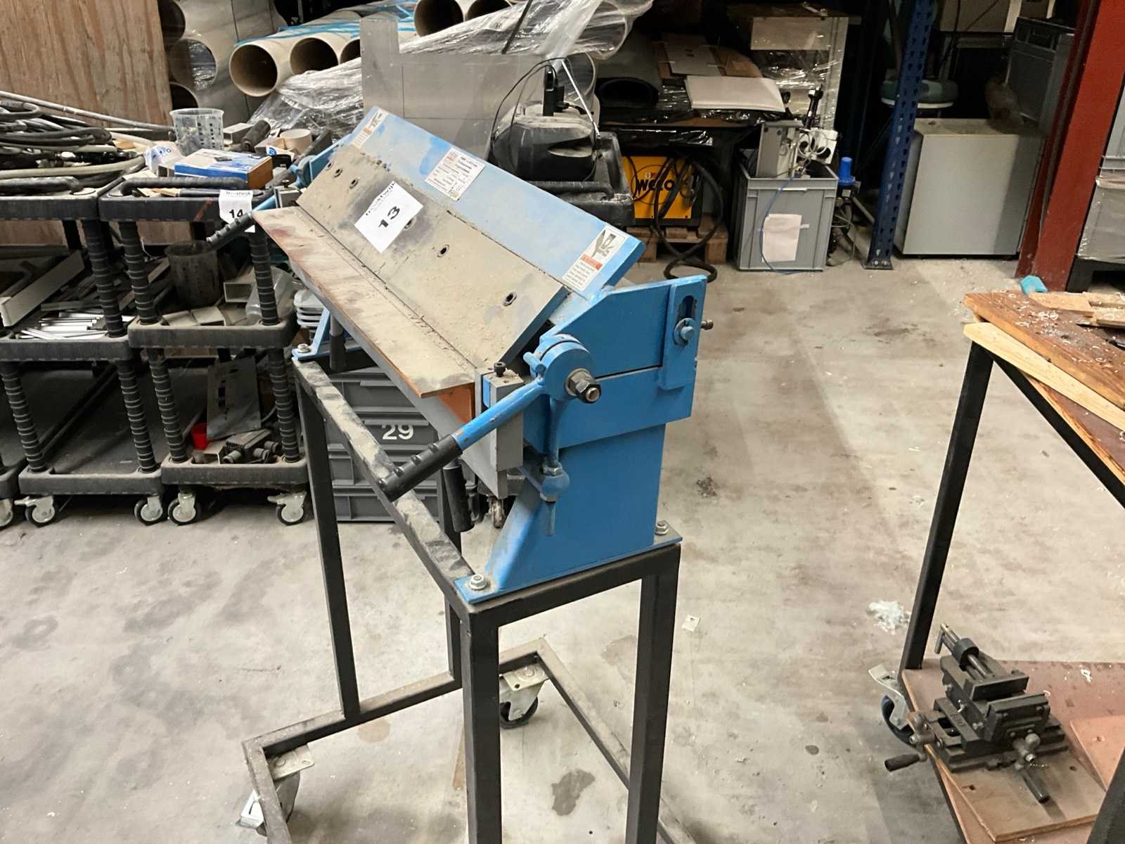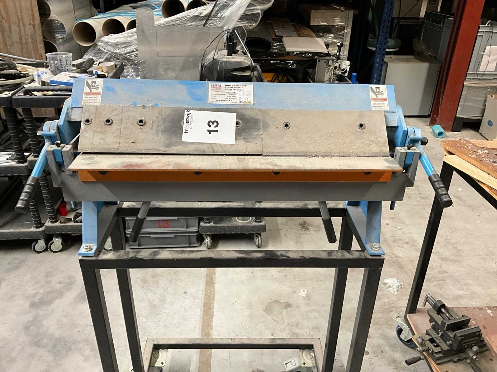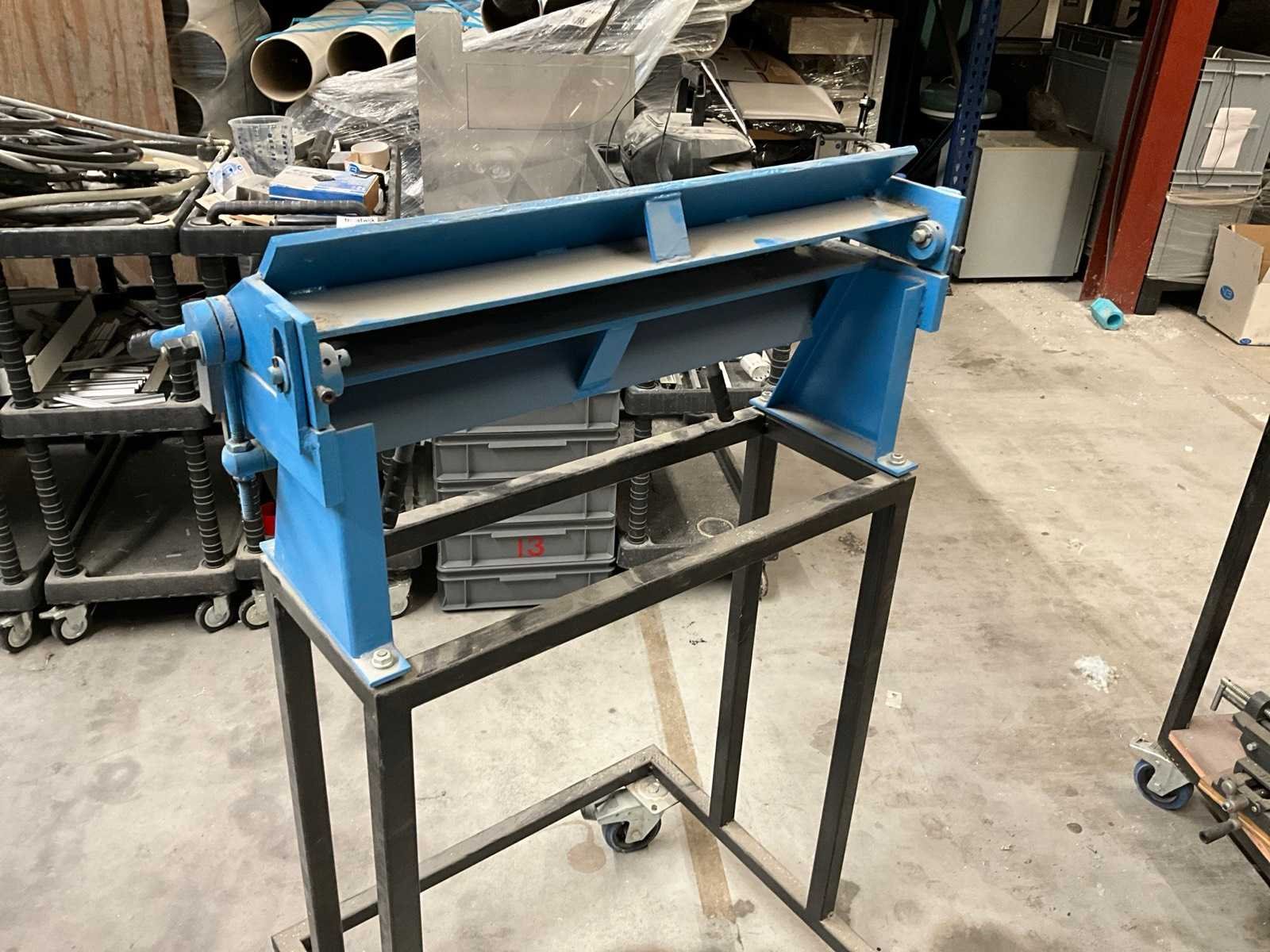 Op mobiel onderstel Merk: HBM Bouwjaar: 2017 Serienummer: 4060 Werklengte: 610mm Max. plaatdikte: 1mm Machinegewicht: 45kg Afmeting l: 600mm Afmeting b: 800mm Afmeting h: 1200mm