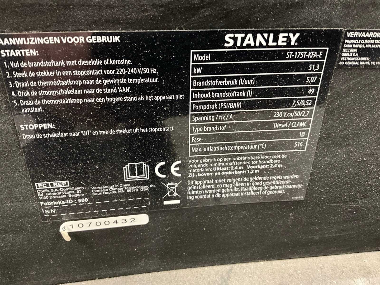 Stanley st-175t-kfa-e heater stookolie