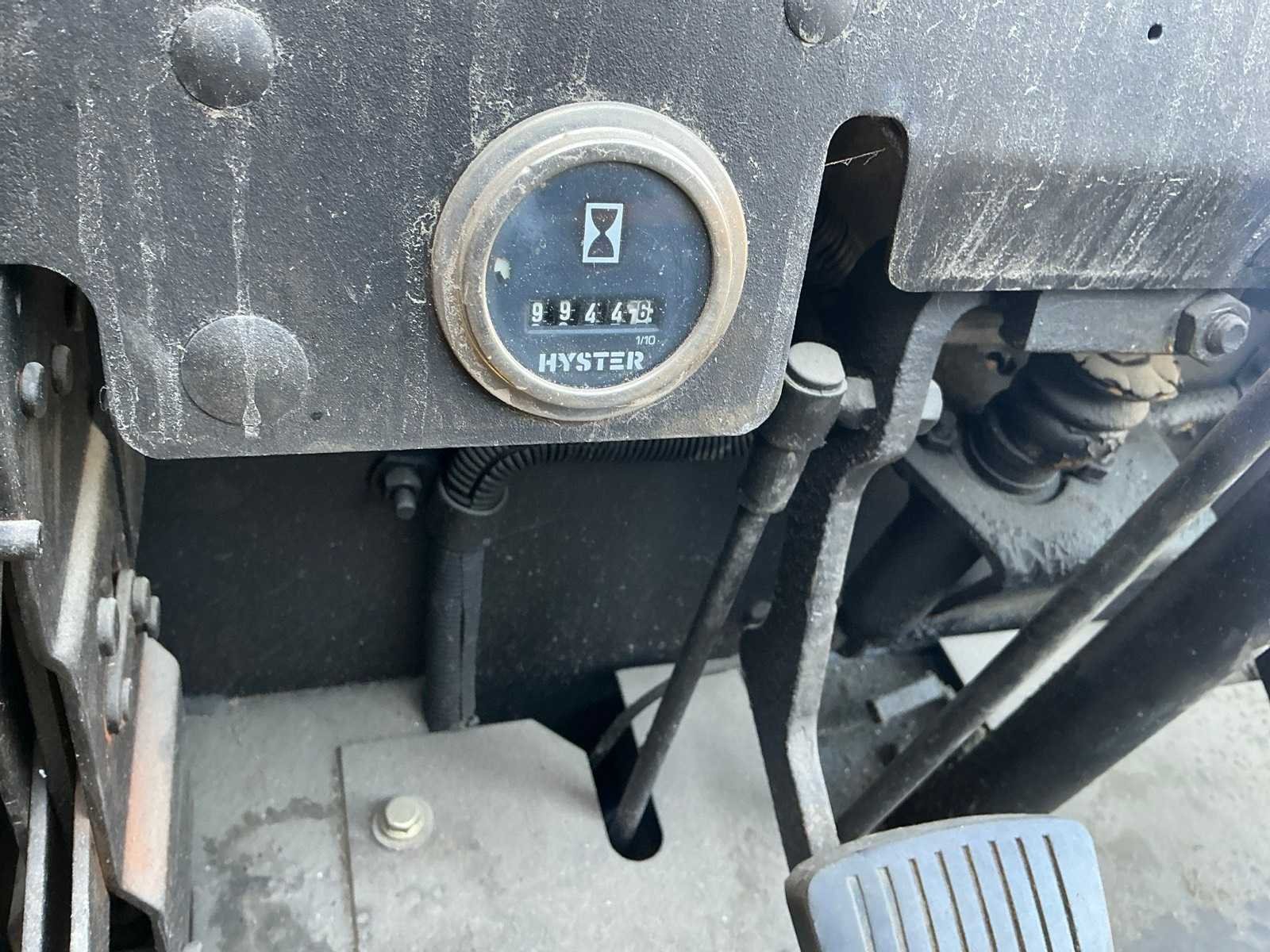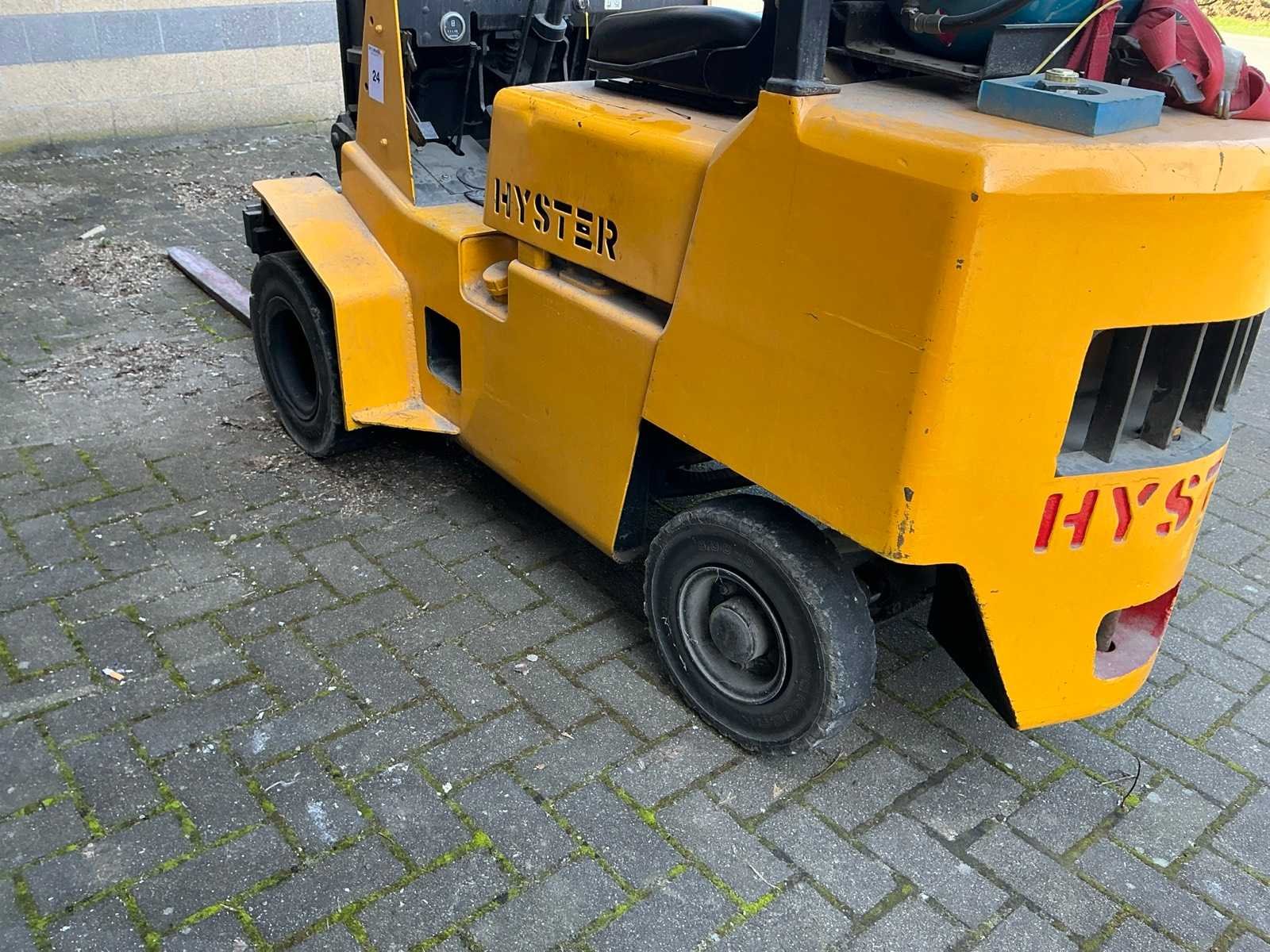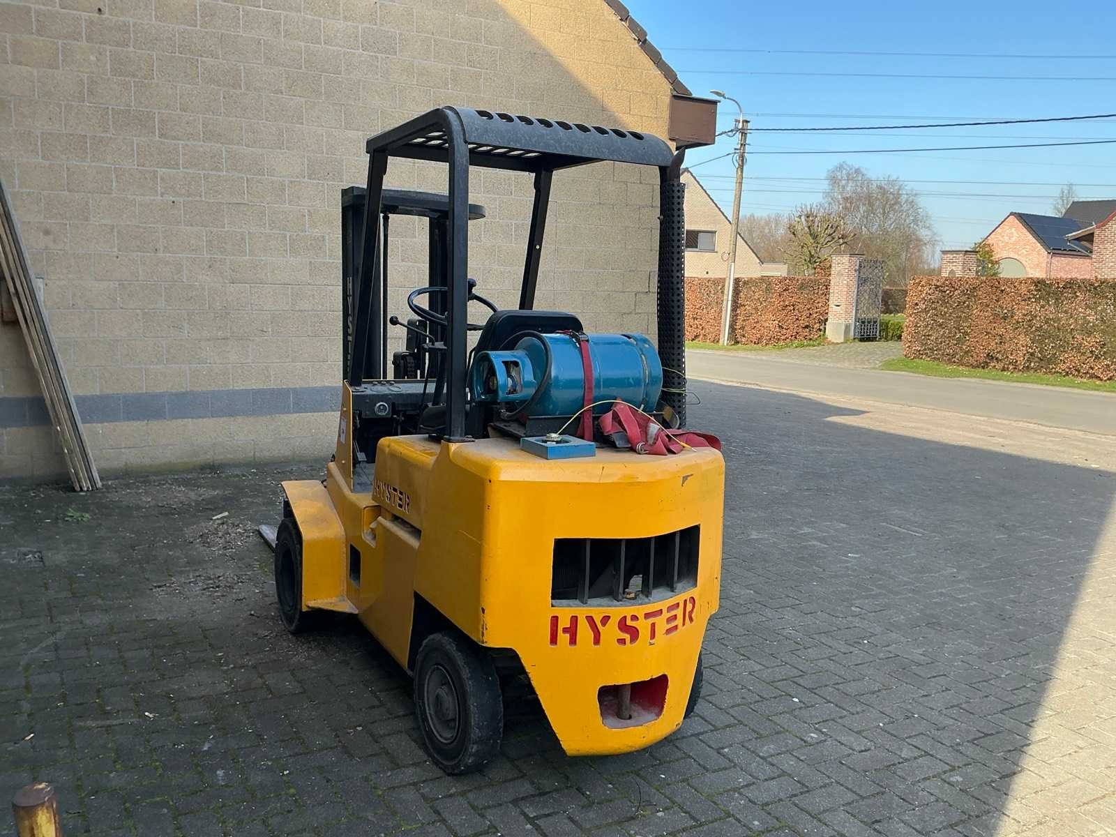 Hefvermogen en Hefhoogte niet gekend Merk: Hyster Brandstof: LPG Mast: Triple Soort band: Volrubber banden Aantal wielen: 4 Afgelezen urenstand: 9944 Side-shift: true Lepellengte: 1200mm Vol rubber banden: true LPG: true