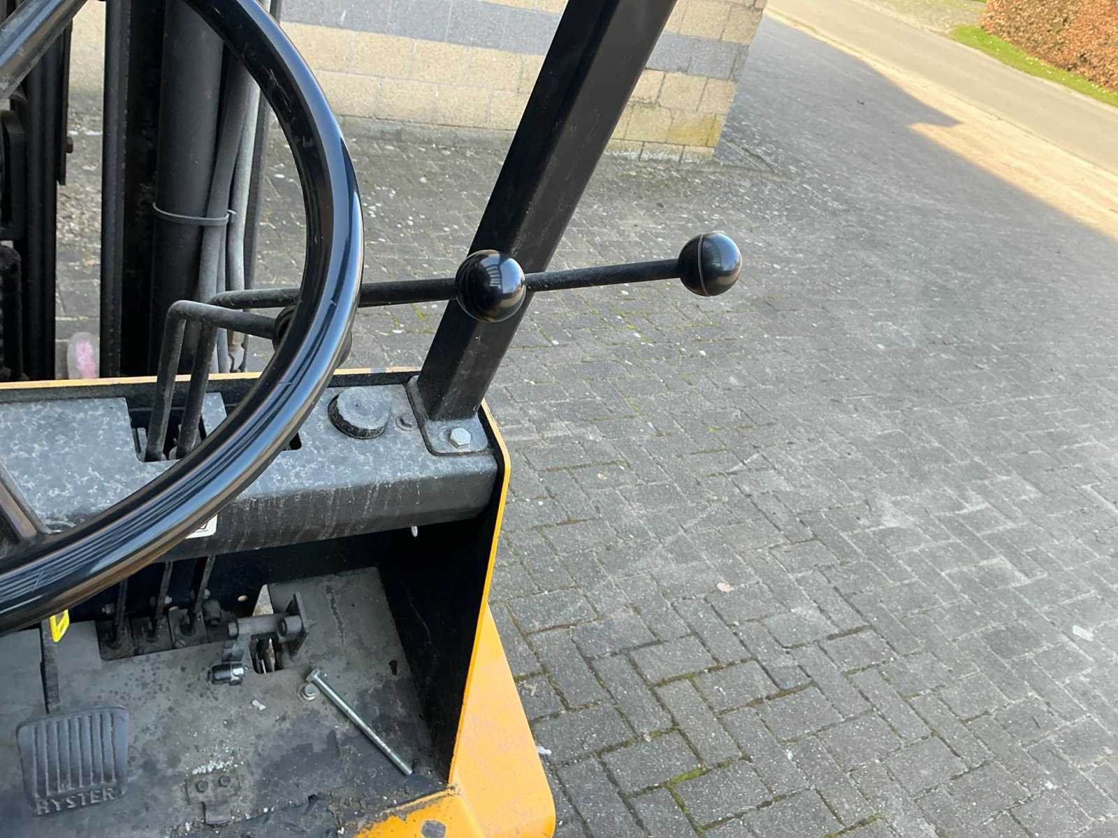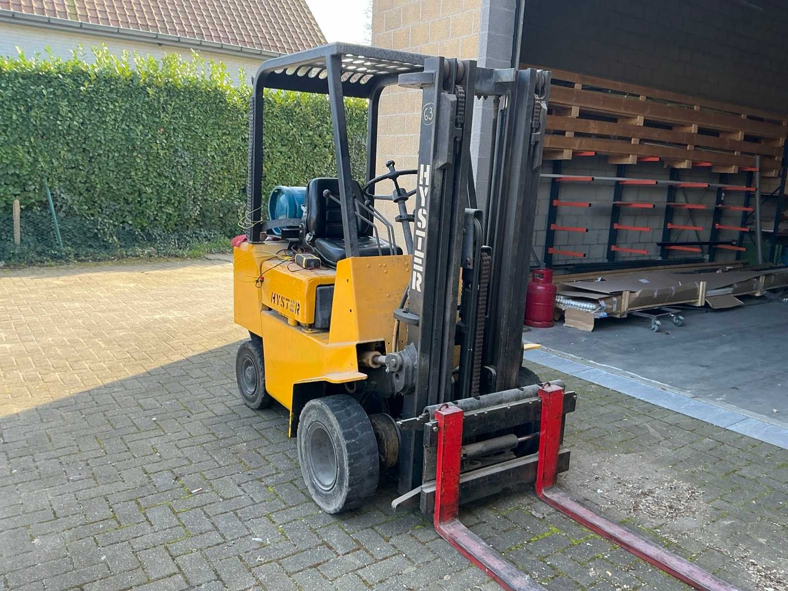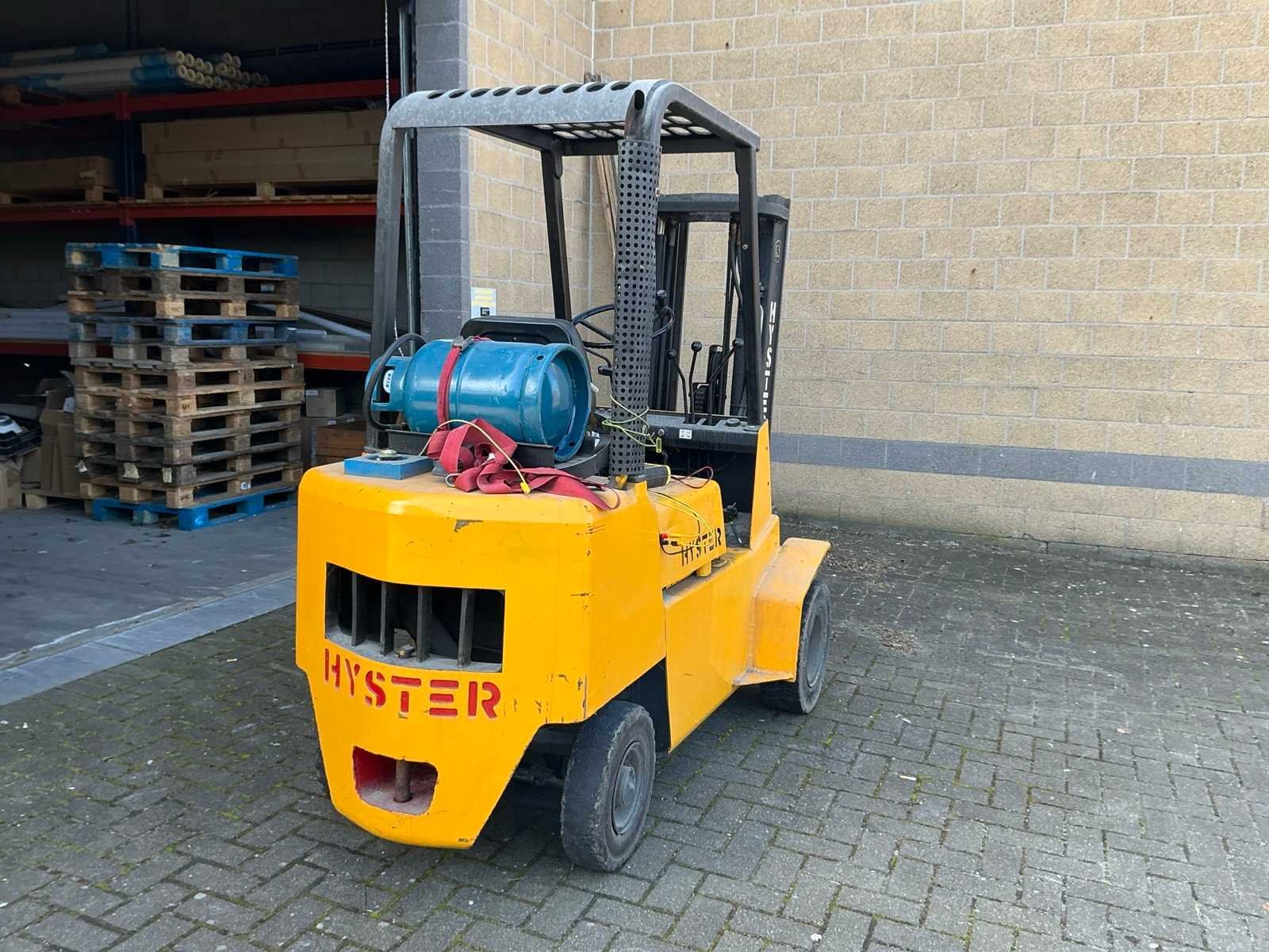 Hefvermogen en Hefhoogte niet gekend Merk: Hyster Brandstof: LPG Mast: Triple Soort band: Volrubber banden Aantal wielen: 4 Afgelezen urenstand: 9944 Side-shift: true Lepellengte: 1200mm Vol rubber banden: true LPG: true