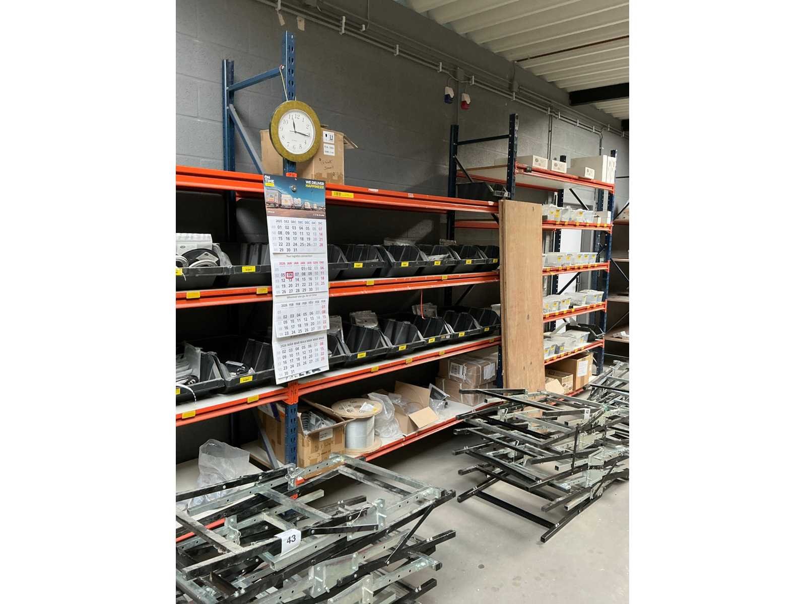 Ca. 16 lopende meter. !UITGEZONDERD INHOUD! Door koper te demonteren van omgeving. Afmetingen stellingsgedeelte 1x: 200 x 60 x 250cm. Bestaande in totaliteit uit 8 stellingsgedeelten = (8x) afmetingen: 200 x 60 x 250cm = 1600 x 60 x 250cm. Merk: Mecalux Type: 7515 Aantal staanders: 12 Aantal liggers: 68 Aantal legborden: 34 Demontabel: true