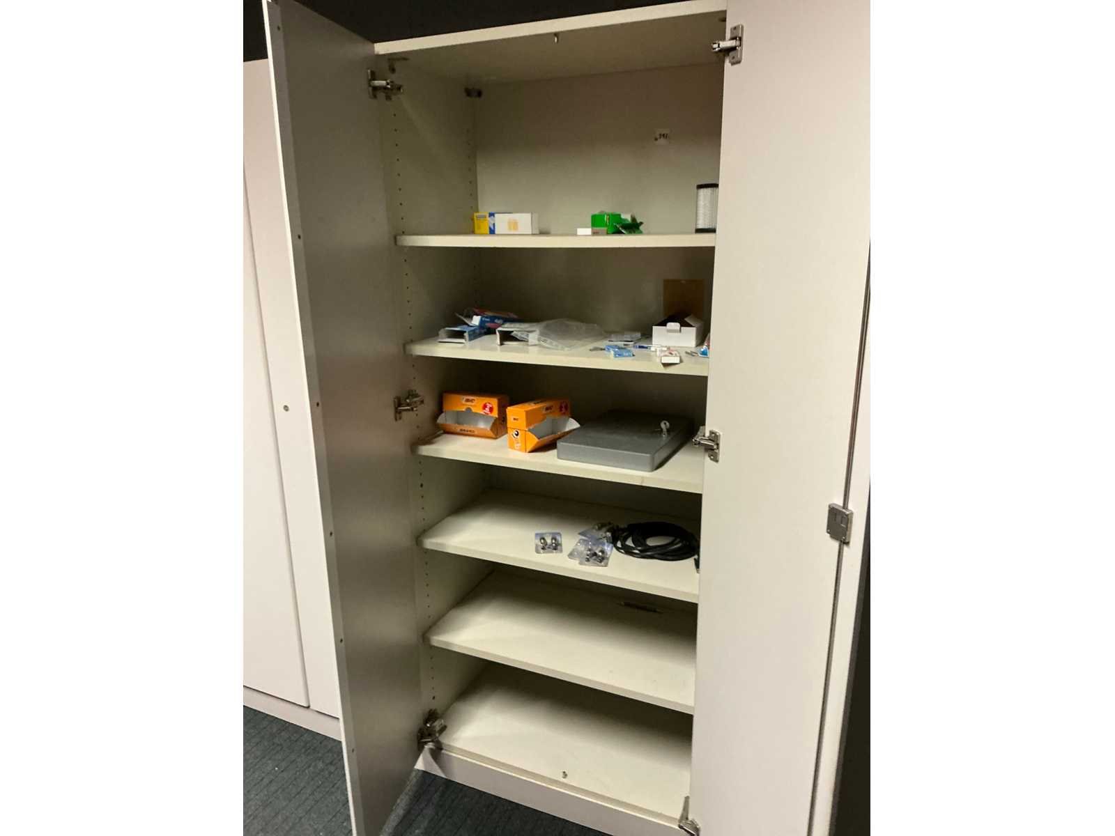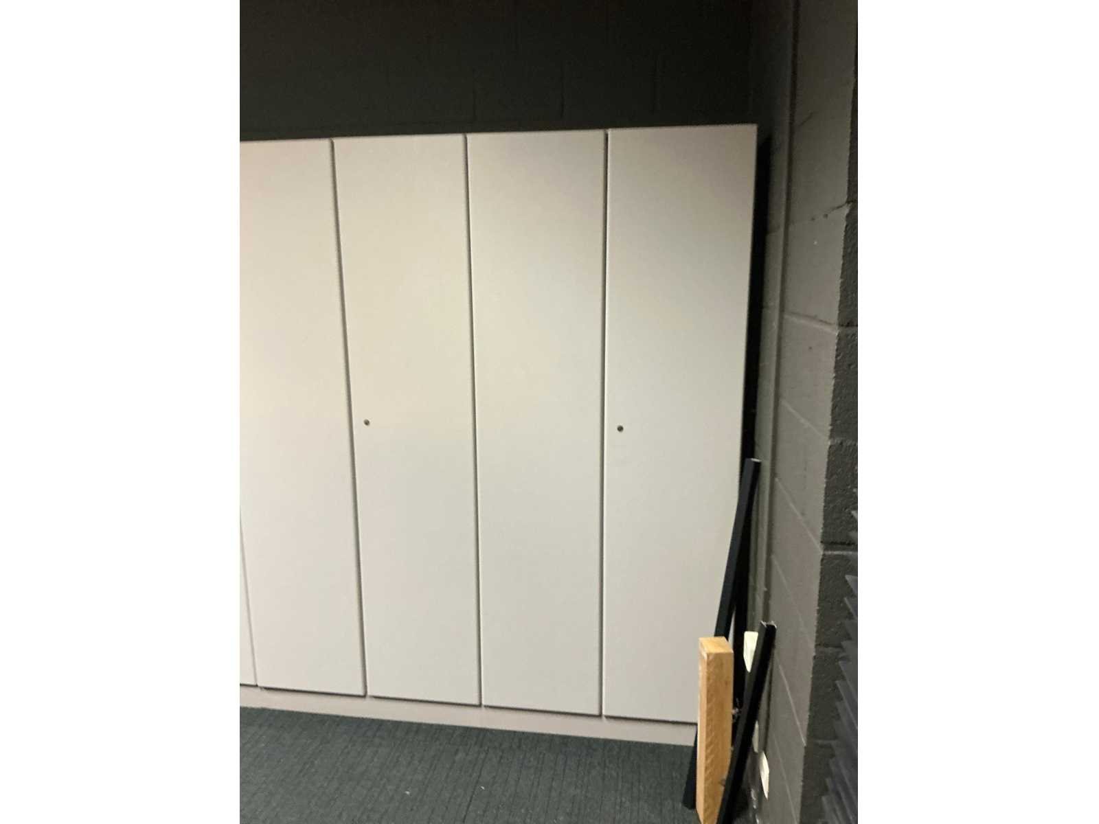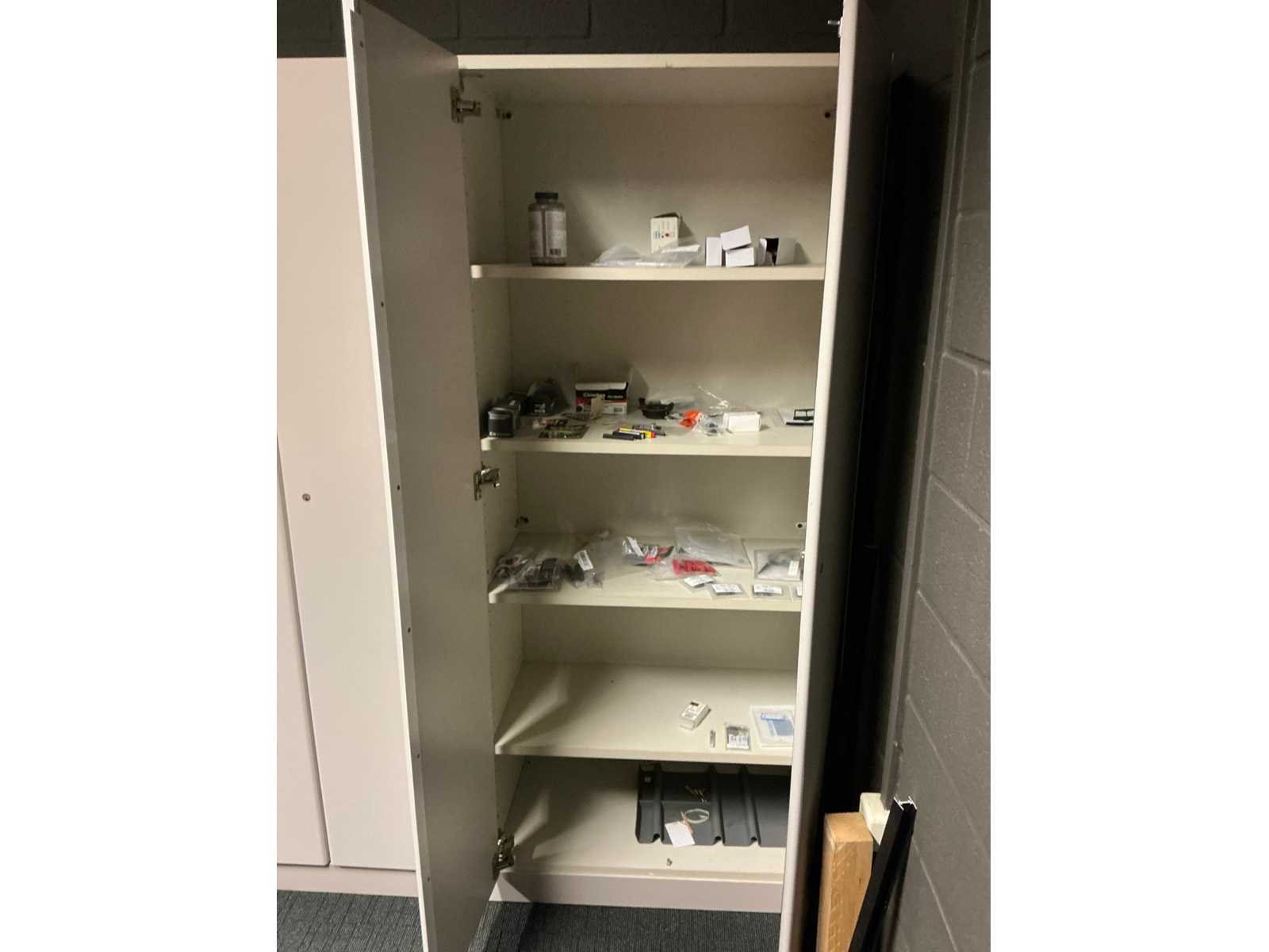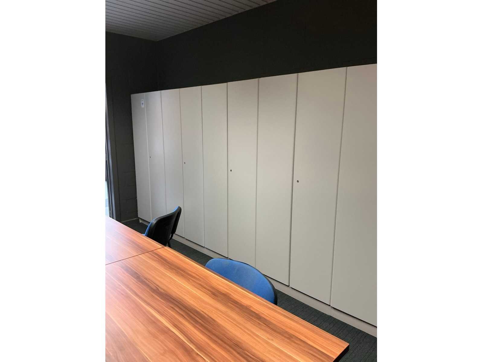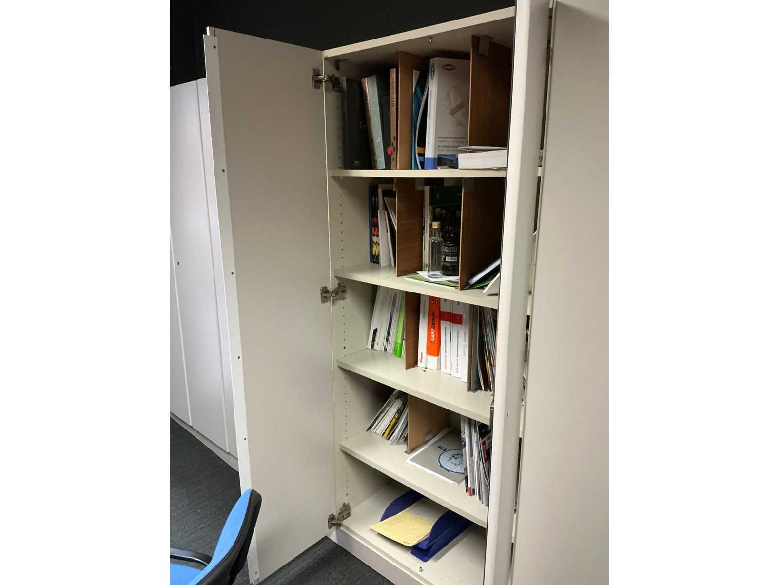 Voorzien van 12x kastdeur en elk voorzien van 4x legplank. Door koper te demonteren/verplaatsen van omgeving. Met inhoud. Lengte: 480cm Breedte: 40cm Hoogte: 187cm