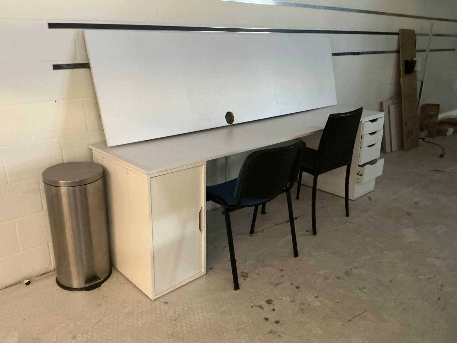 Voorzien van 1 deur en 5 laden Compleet met vuilnisemmer en 2 diverse bijzetstoelen Lengte: 233cm Breedte: 64cm Hoogte: 72cm
