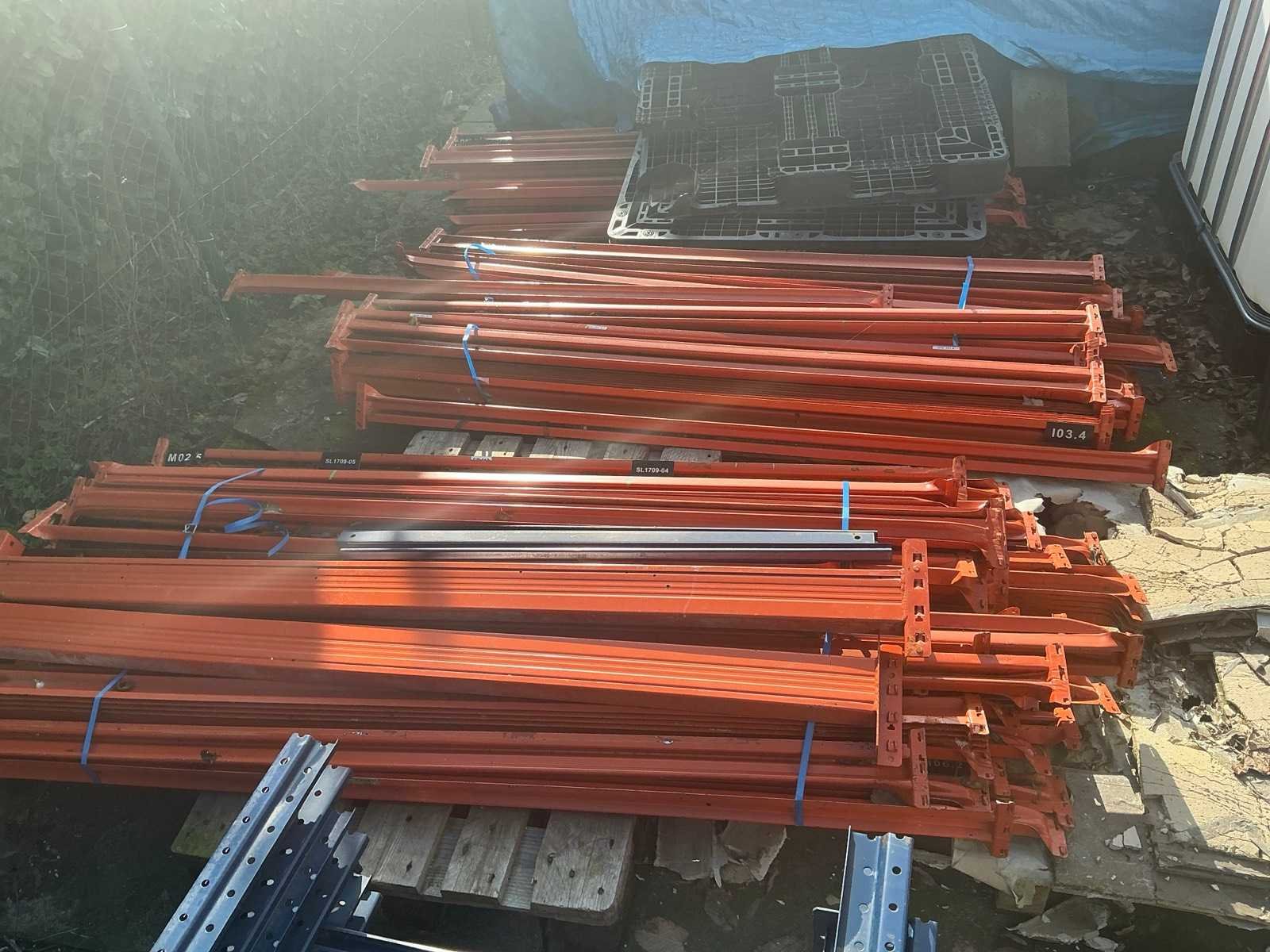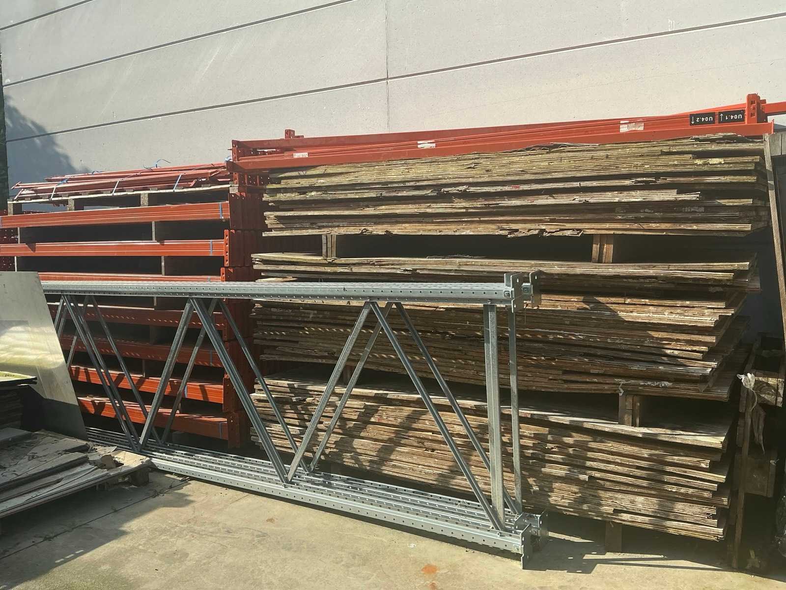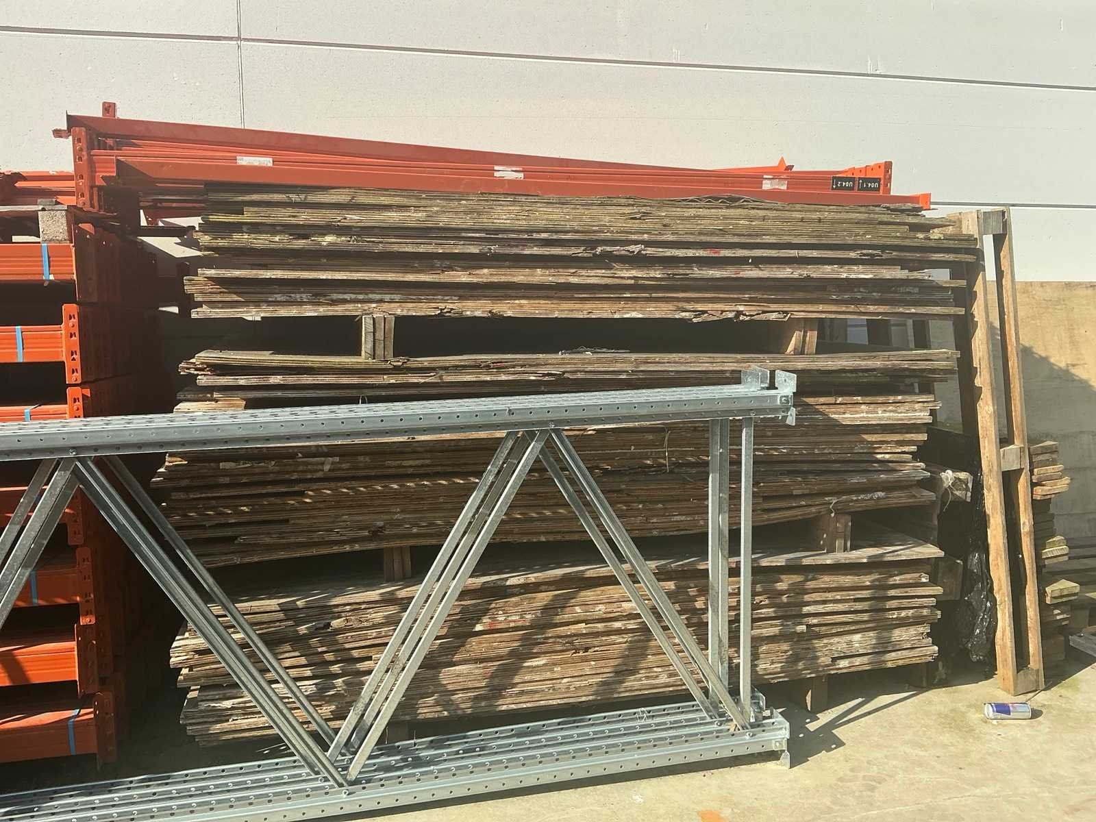 Bestaande uit 8 diverse staanders waaronder met een hoogte van circa 300 x 90 cm en 450 x 110cm, circa 135 leggers waaronder met lengte 270 cm compleet met partij multiplaat met afmeting circa 250 x 124 cm