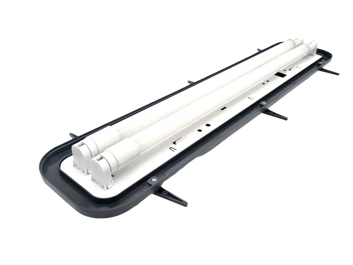 IP65 waterdicht, product kleur donkergrijs, afm. 1289 x 138 x 84mm, materiaal PC & ijzer reflector, bevestigingsset inclusief, twee T8 Tube invoer, LED TL Tube niet inbegrepen, voltage 220-240V, een zijde L N aansluiting, max 36 watt, Attentie verkeerd informatie over product kleur op de dozen, compatibel met 120cm TL buizen, SKU 00653 Merk: LAMPINNO Product type: Industrieel Kleur: Donker Grijs Lengte: 128.9cm Breedte: 13.8cm Hoogte: 8.4cm Materiaal: PC en ijzer