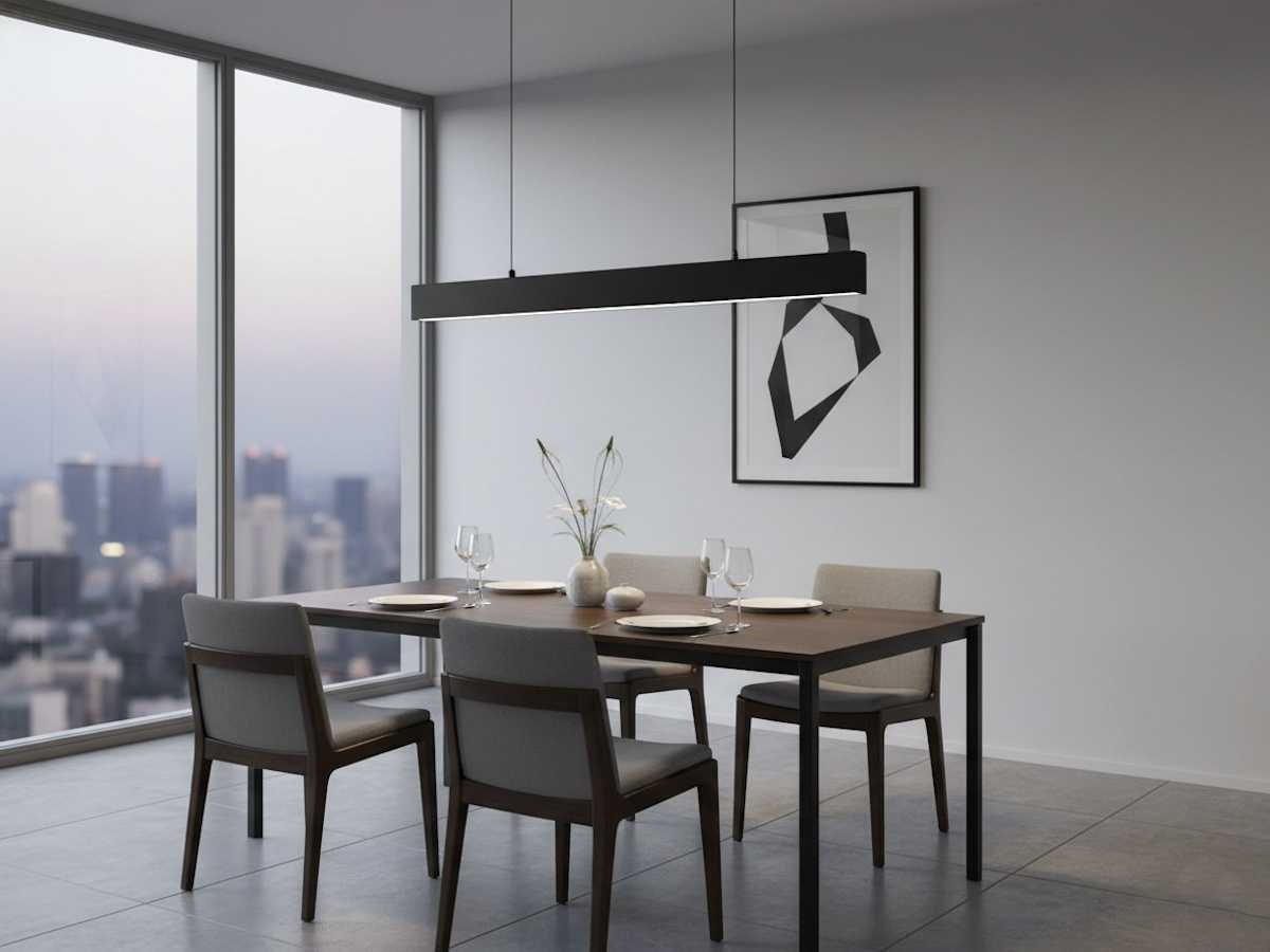 Lichtstroom 4200 lumen, lichtkleur schakelbaar tussen warm wit 3000K neutraal wit 4000K daglicht 6500K, geschikt voor binnen, afdichting IP20, product kleur wit, afm. 1200 x 75 x 50 mm, materiaal aluminium en PC, stralingshoek 120°, door de meegeleverde ijzerdraden is de lamp in hoogte verstelbaar, levensduur 70.000 uren, voltage 170-265V (50/60Hz), HRZ201 Merk: LAMPINNO Product type: Hanglamp Wattage: 40W Lichtbron: LED Kleur: Zwart Kleurtemperatuur: 3000K 4000K 6000K Lengte: 120cm Breedte: 5.0cm Hoogte: 7.5cm Materiaal: aluminium en PC