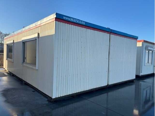 - Bestaat uit 2 kantoorunits. - Serienummers: 99/8873 en 99/8874. - Afmetingen per unit: 9 x 3 meter. - Kraanogen op het dak. - Ramen uitgerust met rolluiken. - Enkele buitendeur. - Geïsoleerd in vloer, wanden en plafond. - Verlichting, verwarming en stopcontacten aanwezig. - Voorzien van zekeringkast. - Koppelmateriaal inbegrepen Merk: Warsco Type: 9x3