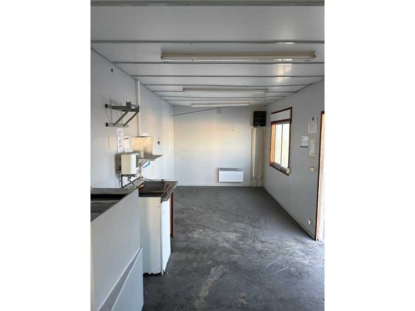 - Serienummer: 93/5112. - Afmetingen: 8 x 3 meter. - Kraanogen op het dak. - Geïsoleerd in vloer, wanden en plafond. - Raam uitgerust met rolluik. - Keukenblok met koud en warm water. - Verlichting, verwarming en stopcontacten aanwezig. - Voorzien van zekeringkast. - Voorzien van buitendeur. Merk: Warsco Type: 8x3 Afmeting l: 8000mm Afmeting b: 3000mm Aantal ramen: 2 Keukenblok: true