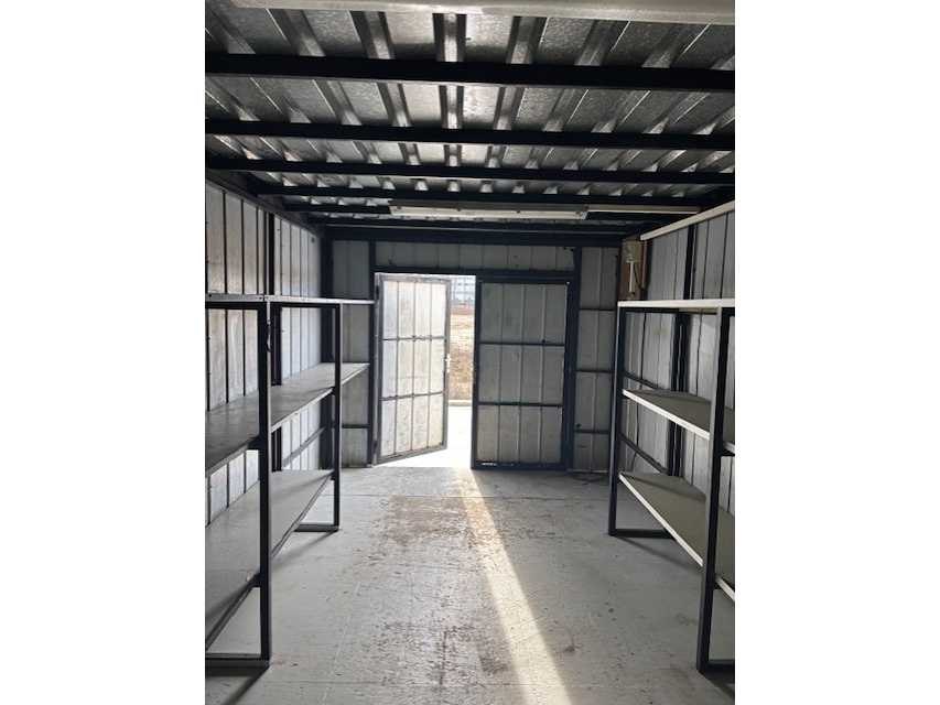 - Serienummer: 97/7375. - Afmetingen: 6 x 3 meter. - Kraanogen op het dak. - Dubbele buitendeur. - Rekken ca. 10 meter met 3 leggers. - Zekeringskast. - Verlichting. Merk: Warsco Type: 6x3 Totale afmeting L: 6000mm Totale afmeting Breedte: 3000mm