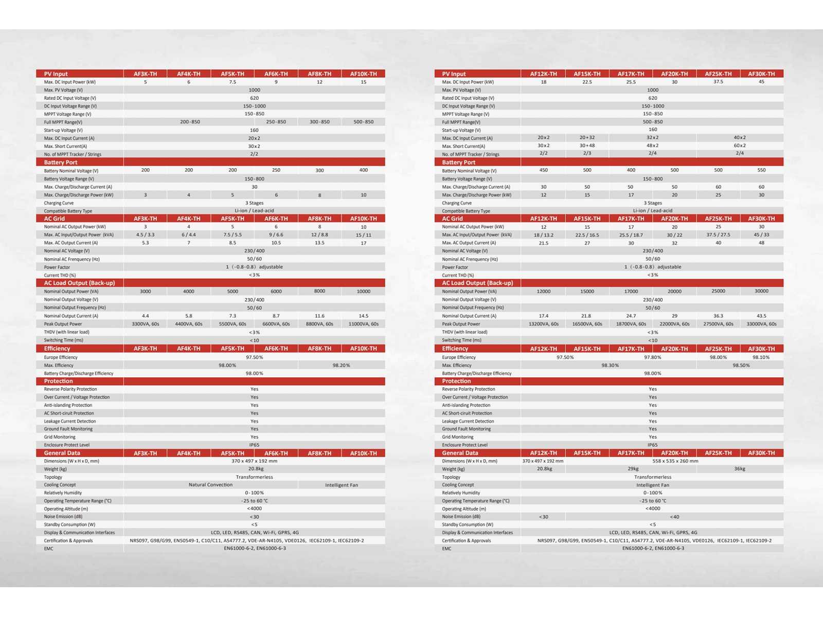 12kw hybride driefasige omvormer, IP65, accuspanning 80-600V Merk: AFORE Three Phase (Hybid inverter) Model: AF12K-MTH