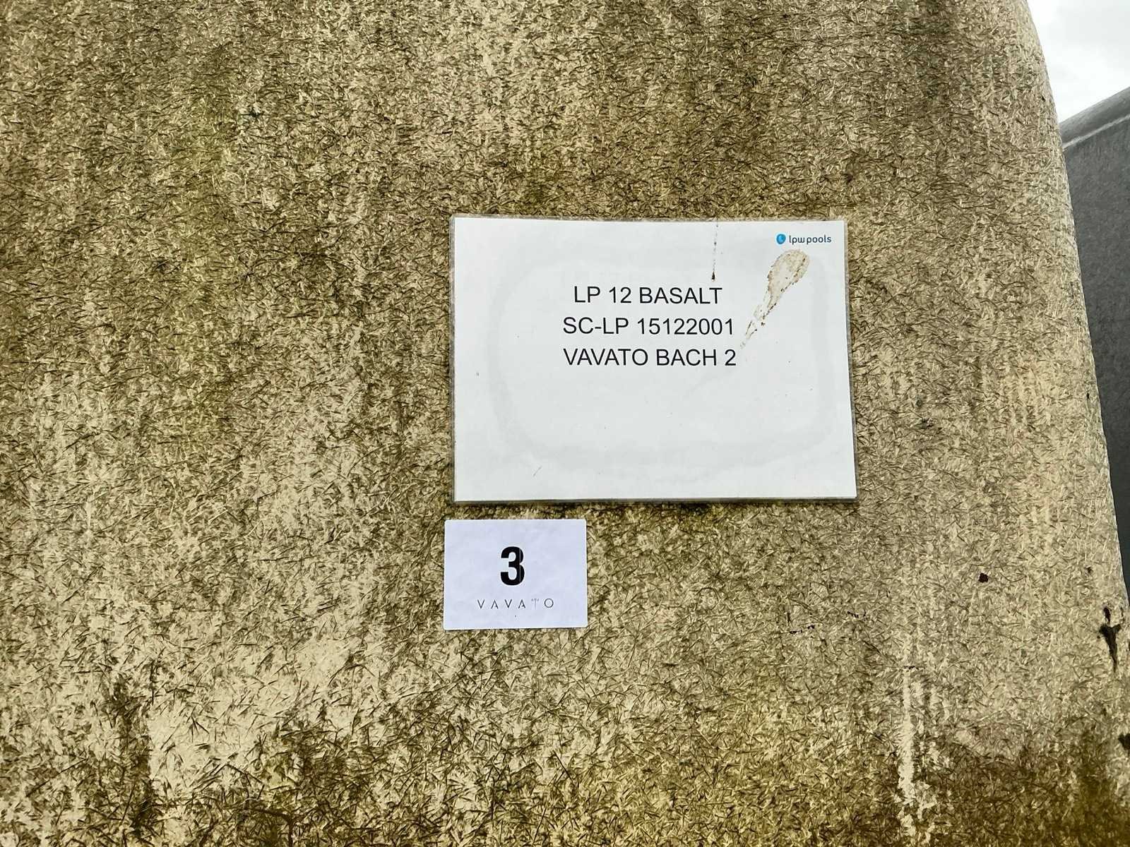 Imperfectie: kleurvlekken, 1e foto ter referentie (gelijkaardig zwembad) Kleur: Donkergrijs Lengte: 1200cm Hoogte: 150cm Materiaal: Vinylester Epoxy